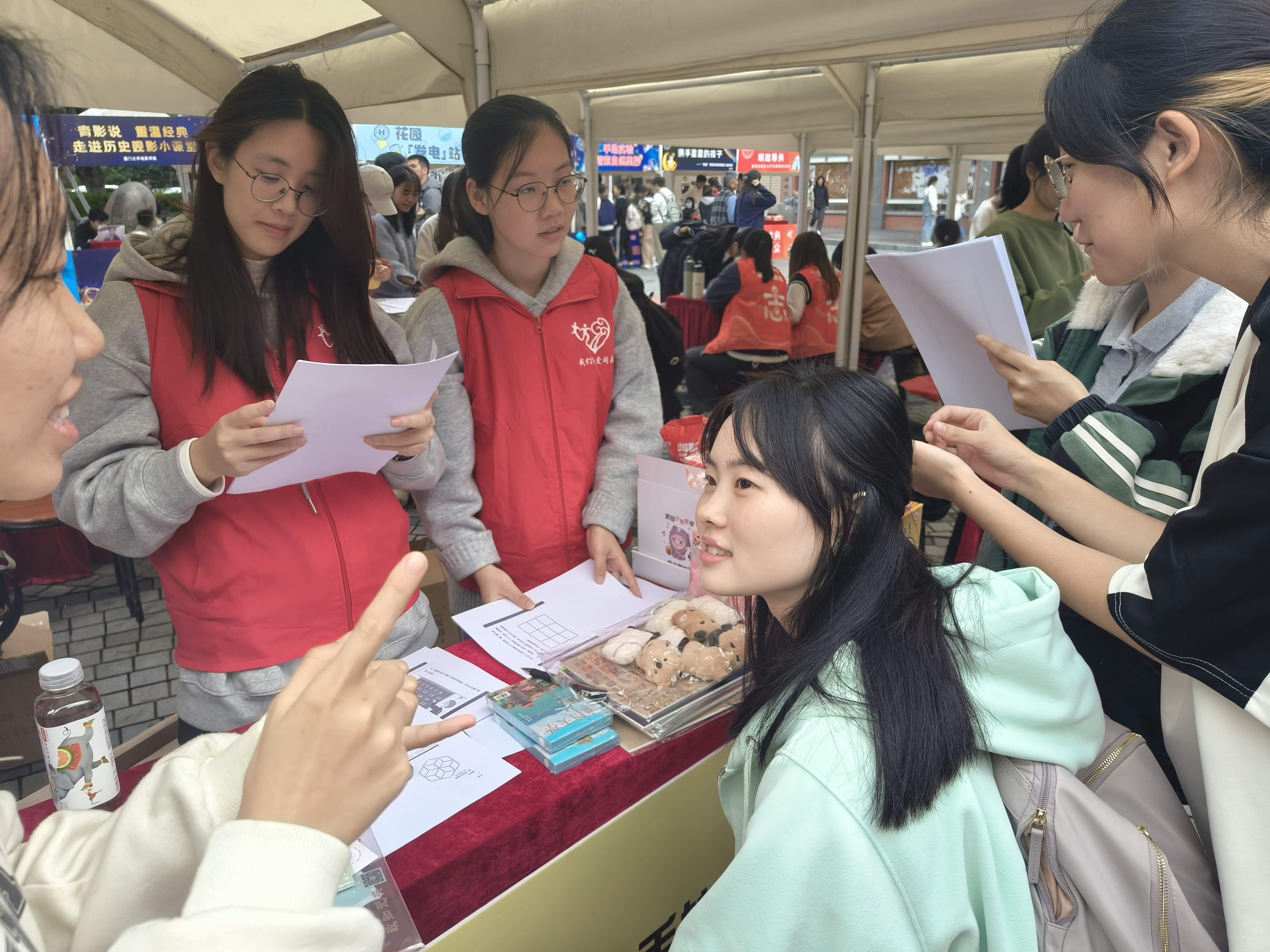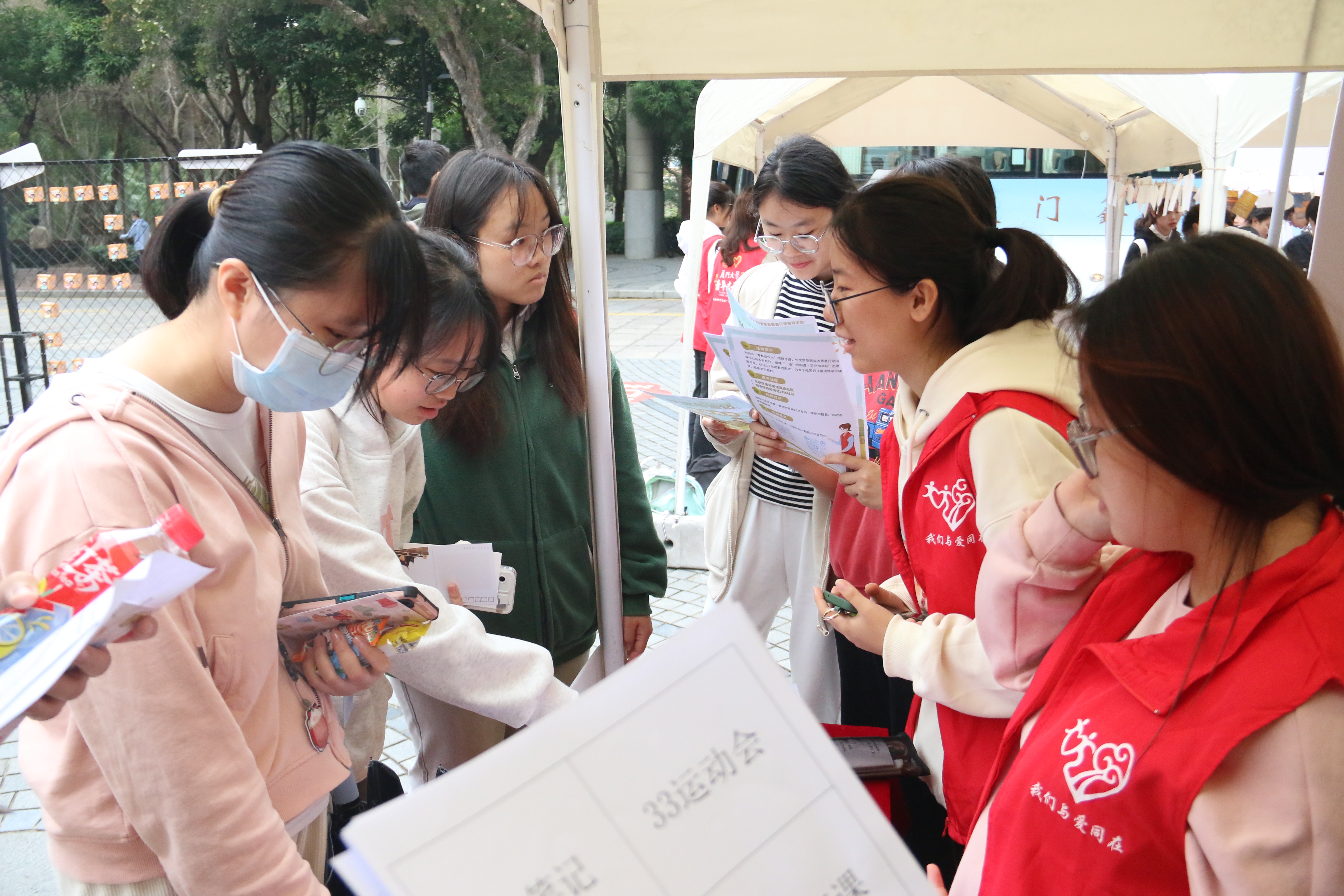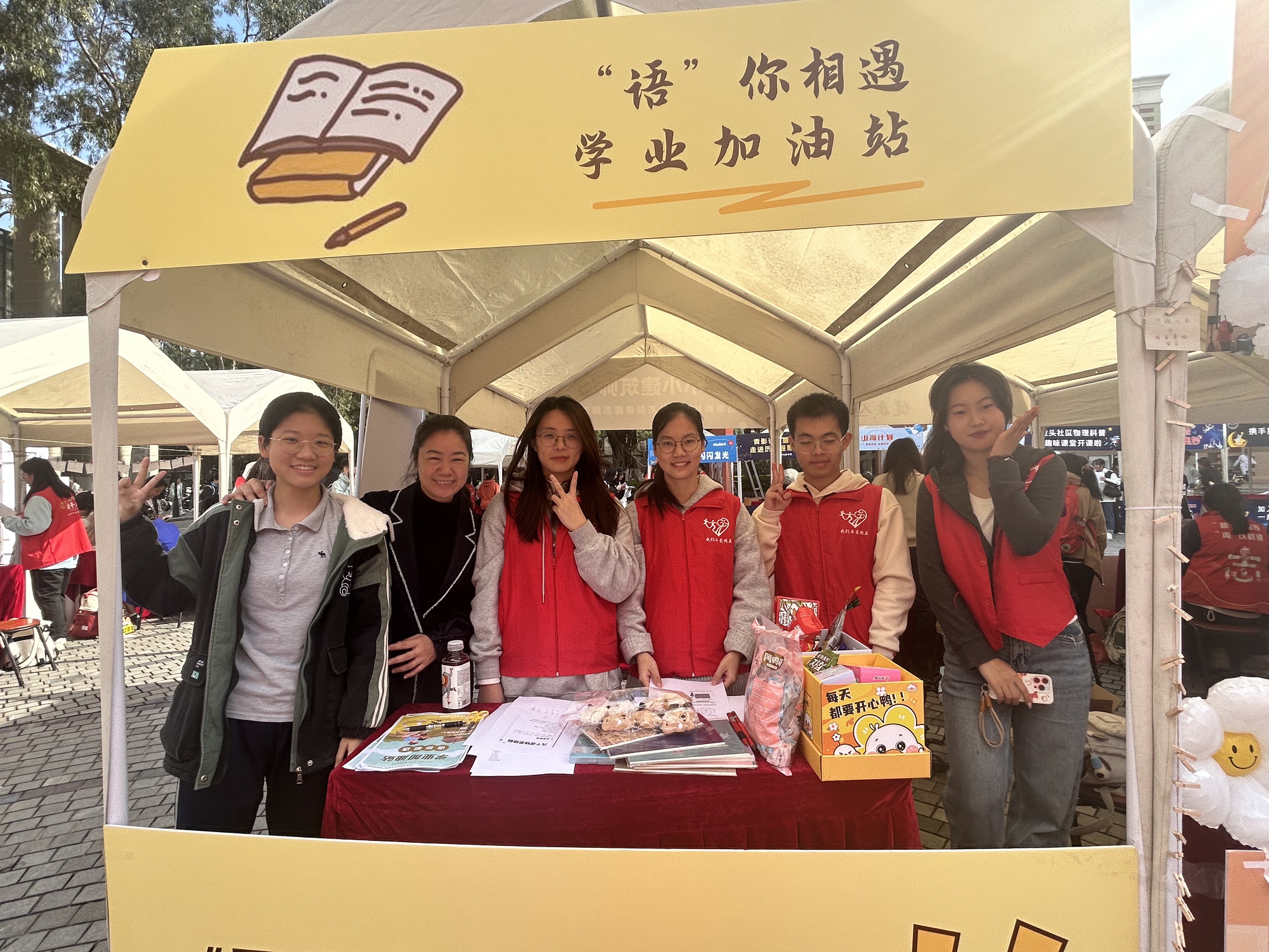 外文学院青年志愿者行动指导中心精心布置摊位,热情分发宣传单,向前来参观的同学详细介绍“语”你相遇·学业加油站项目,鼓励厦大学子发挥专业优势,回报社会,在奉献中实现自我价值的升华。