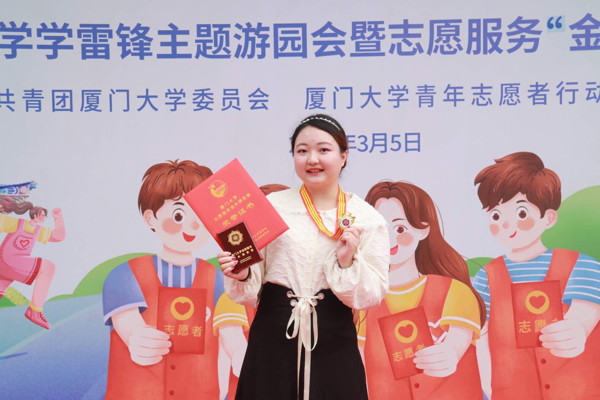 为激励和引导青年大学生积极践行社会主义核心价值观,学习弘扬雷锋精神和“奉献、友爱、互助、进步”的志愿服务精神,新学期伊始,学校启动2023年度志愿服务“金木棉奖章”评选表彰活动。3月5日,“志青春,造WE来”厦门大学学雷锋主题游园会暨志愿服务“金木棉奖章”表彰仪式在三家村学生广场举办,我院学生张会紫荣获“厦门大学志愿服务金木棉奖章个人标兵”,戴晓阳、周佳华荣获“厦门大学志愿服务金木棉奖章个人”。