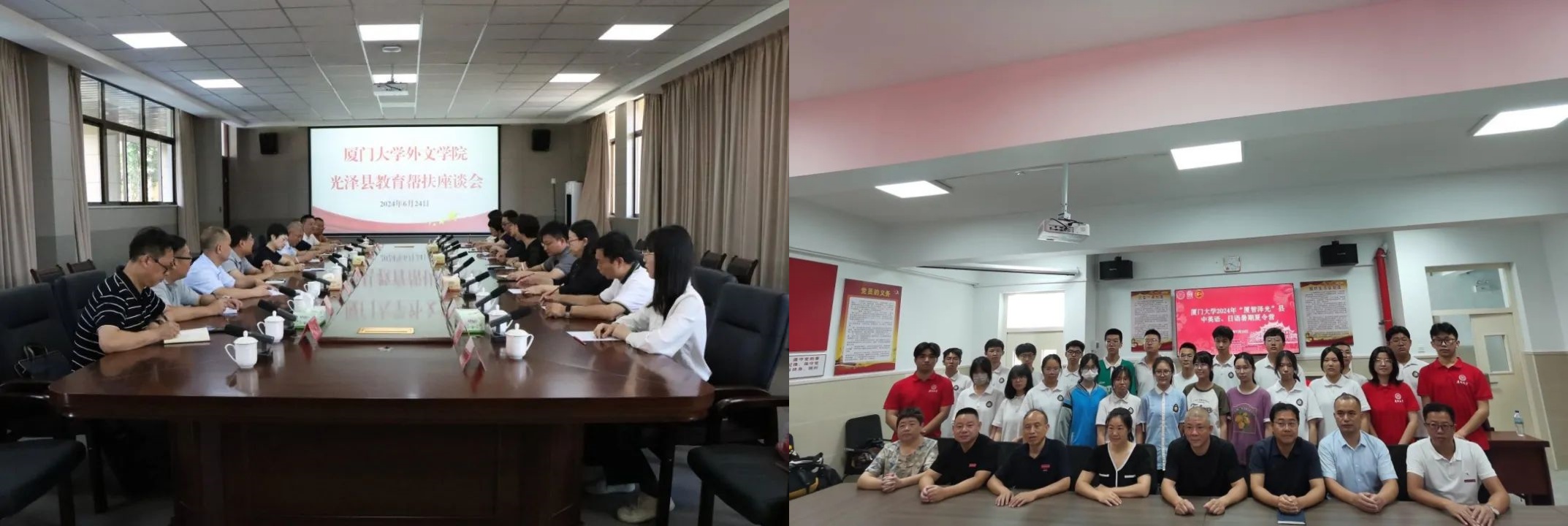 本次云课堂活动是外文学院与光泽县教育局充分沟通、达成共识的成果,也是进一步落实外文学院与光泽县外语教育教学帮扶工作的又一实招。6月24日,外文学院党委书记徐琪带队赴光泽县,就外语教育教学帮扶工作进行座谈交流,推动对口帮扶项目落实落地,提出外文学院将以“云课堂”形式为光泽县中学生提供有针对性、专业性的英语、日语辅导,为光泽教育强县建设贡献厦大外文力量。7月12-17日,外文学院选拔四名优秀学生组建“厦智泽光”暑假“三下乡”社会实践队,由院团委副书记戴晓燕带队前往光泽县第一中学和第二中学开展外语学习夏令营活动,实践队员细致耐心、活泼生动的教学方式获得了中学生们的认可,并结下深厚友谊。