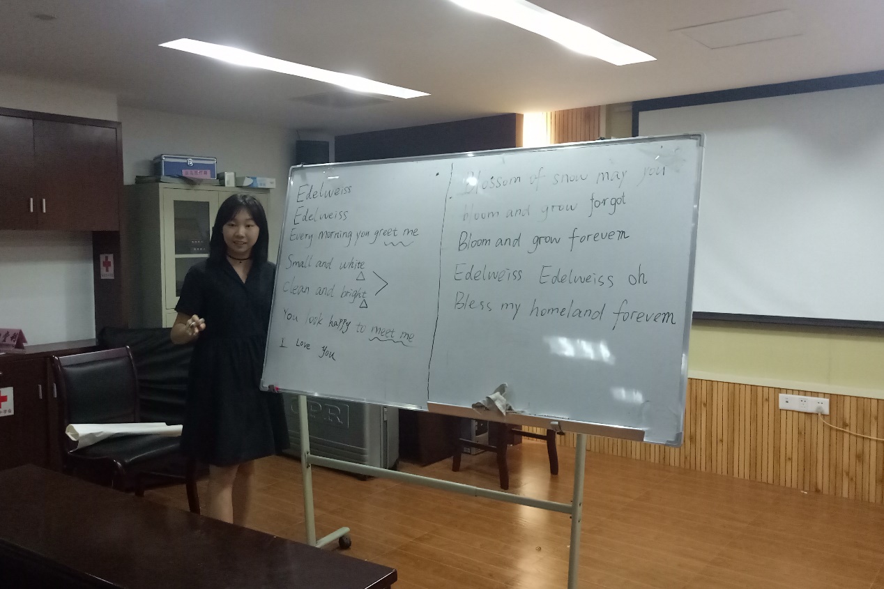 在课堂学习之余,实践队员们还专门准备了英文电影欣赏、歌曲教学、贺卡制作等趣味项目。不仅锻炼了营员们的英语水平,让营员们在快乐中收获知识,也对外国文化有了进一步的了解。