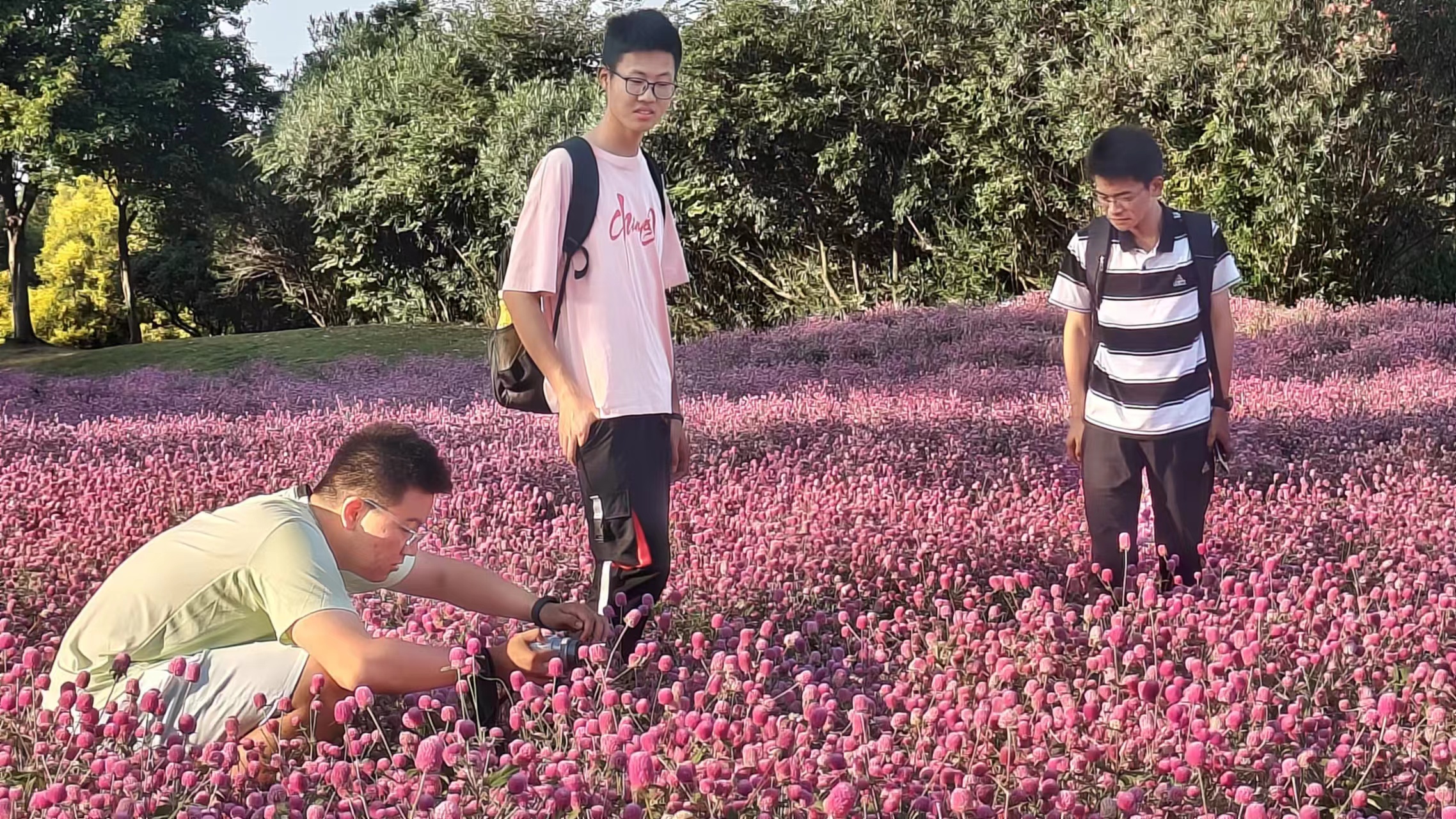 英专一班、英专四班和西班牙语班分别来到了植物园,在与大自然亲近的过程中敞开心扉,相互交流。英专一班组织了“温情海龟汤”的小游戏,大家团结协作,在感受乐趣的同时加强班级凝聚力。英专四班一起爬山登顶,在花海中小憩,同行老师倾听大家的生活体会和日常见闻,为大家答疑解惑。西班牙语班先进行了草坪心理交流会,互相安慰和鼓励,随后,大家结伴游玩,在植物园的清新空气中感受生命的力量。