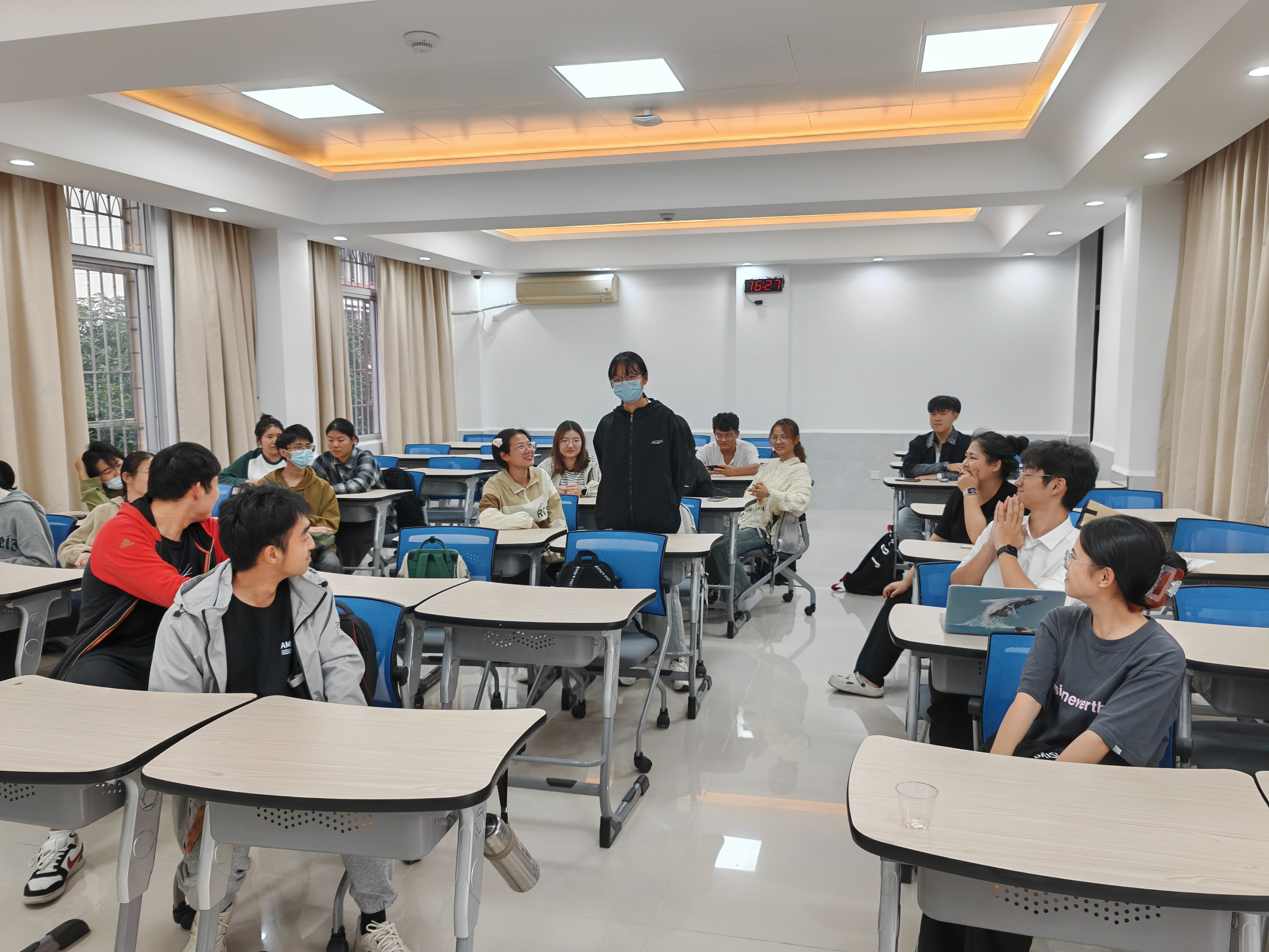 英专三班选择在图书馆,通过阅读分享的形式互相交流观点,碰撞思想火花。这不仅快速拉近了同学们的距离,也在沟通讨论的过程中疏通了心灵,拓展了思维能力。