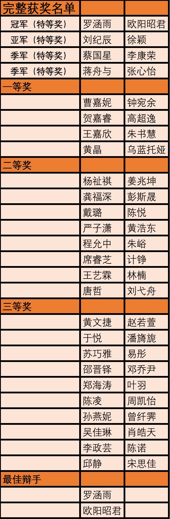获奖名单