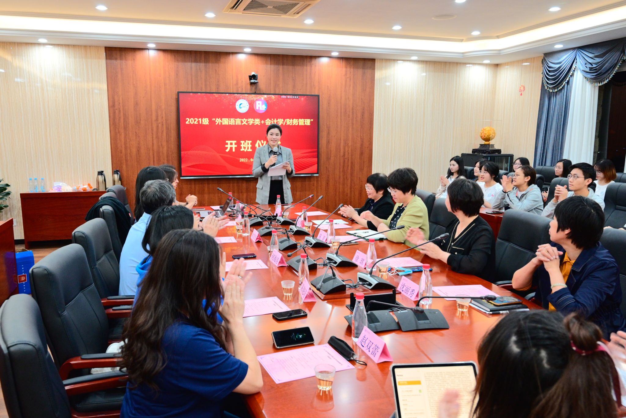 财务管理与会计研究院2021级班主任陈晓琦在发言中指出,同学们选择的“外语+”这一道路虽然具有挑战性,但更能帮助同学们开拓国际视野、提升自身竞争力,陈老师叮嘱同学们“不论如何,坚持向上、向善”,努力克服困难,积极向老师们寻求帮助。