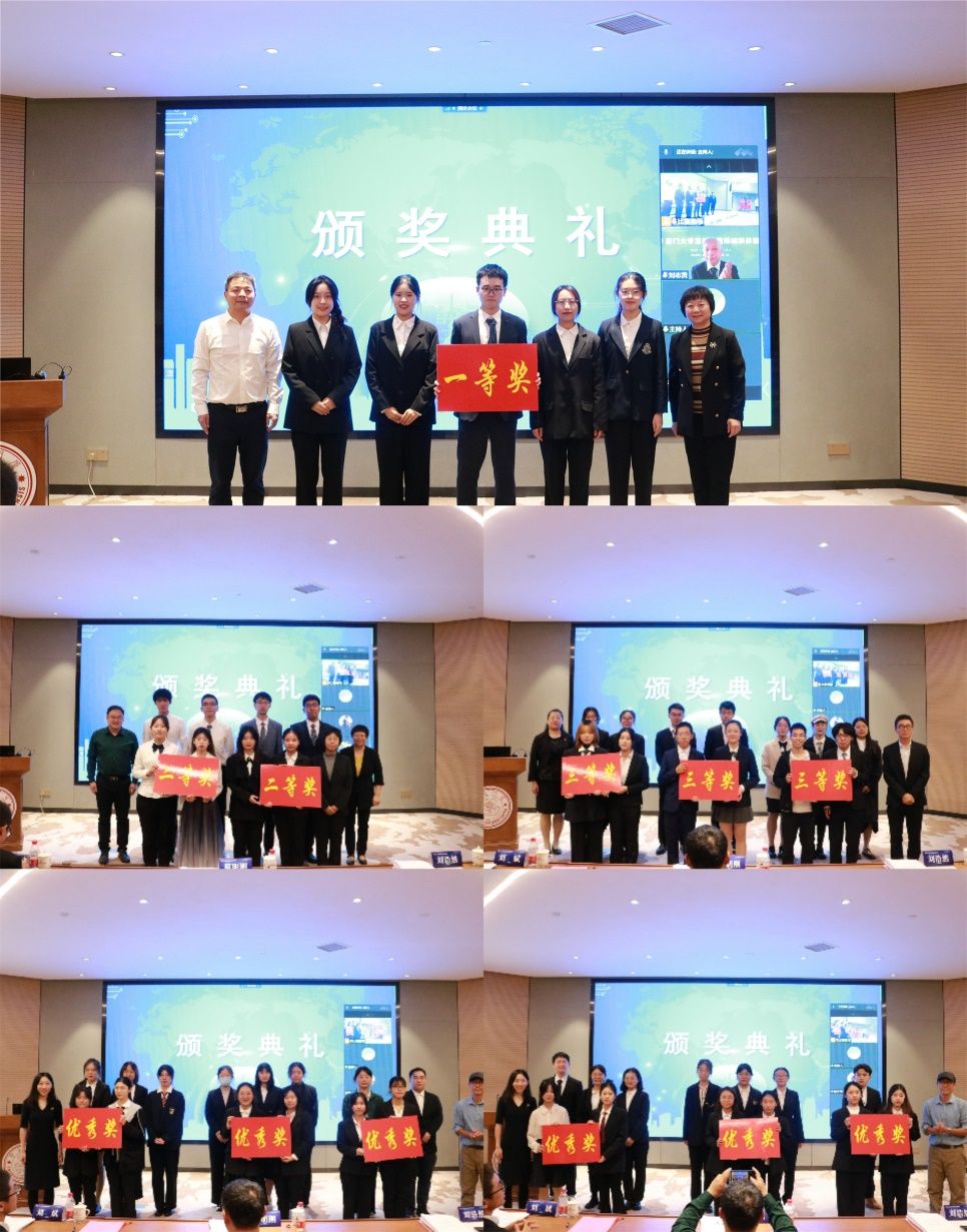 12月4日上午,厦门大学第四届国际组织体验周之国际组织大学生创新大赛决赛于克立楼报告厅举行。本次决赛共有12支优秀队伍入围,决赛采用线上线下同步进行。专家代表刘志贤、陈少华、郭贝思、蔡明刚,以及厦门大学管理学院企业管理系刘斌老师、厦门大学外文学院刘浩然老师担任评委。厦门大学教务处副处长何海涛,外文学院党委书记徐琪、副院长江桂英、英语语言文学系副主任林斌、法语语言文学系副主任沈澍、第二届外国语言文学创新实验班班主任程诗婷和第三届外国语言文学创新实验班班主任傅彦琦等莅临决赛现场。