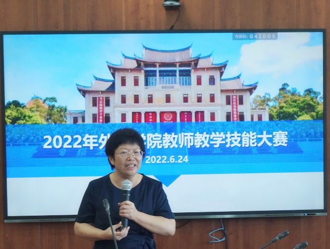 为贯彻落实习近平总书记致厦门大学建校100周年贺信精神,进一步加强教师队伍建设,提高教师教学能力,引导教师开展教学改革与创新,助力百年一流学科建设,6月24日上午,外文学院第六届教师教学技能大赛在德贞楼515会议室顺利举行。本次比赛由各系部推荐,共有英、日、法、德、西、阿拉伯6个语种的7名青年教师参加比赛。外文学院党委书记徐琪教授、院长陈菁教授、原副院长傅似逸教授、法语专业沈澍助理教授、俄语专业李春雨助理教授出席活动并担任评委。大赛由外文学院副院长江桂英教授主持,学院中青年教师观摩了此次比赛。