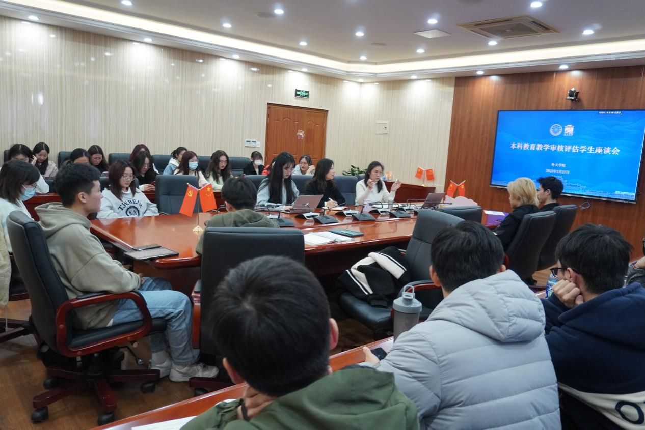 2月27日下午,外文学院在南光三515会议室召开了本科教育教学审核评估学生座谈会。党委副书记沈丽秀,教学秘书陈雯娜、张语铄,辅导员张宇宙以及各年级学生代表参加了此次座谈会,会议由团委副书记戴晓燕主持。