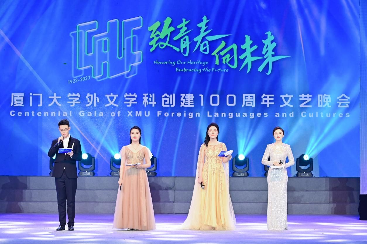 4月8日晚七点半,“致青春·向未来”外文学科创建100周年文艺晚会在厦门大学建南大会堂举办。嘉宾、院友们和学院师生欢聚一堂,共襄盛举,见证外文荣光。