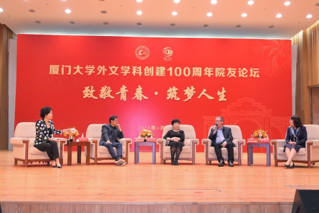 正是厦园好风景,花开时节又逢君。4月9日上午,“致敬青春∙筑梦人生”院友论坛于科学艺术中心音乐厅举行。值此外文学科创建100周年之际,论坛邀请77级院友、德屹资本董事长朱德贞,80级院友、滴灌通集团创始人兼主席李小加,81级院友、深圳市合口味食品有限公司董事长孙小荔,85级院友、商务部欧洲司司长余元堂,98级院友、湖南师范大学外国语学院院长曾艳钰五位嘉宾做客论坛,共忆同窗时光,分享宝贵经验。厦门大学党委常委、组织部部长、统战部部长孙理,厦门大学校友总会副秘书长郑辉,学院党政领导,各地返校院友和学院师生代表共同参加了活动。论坛由外文学院党委书记徐琪主持。
