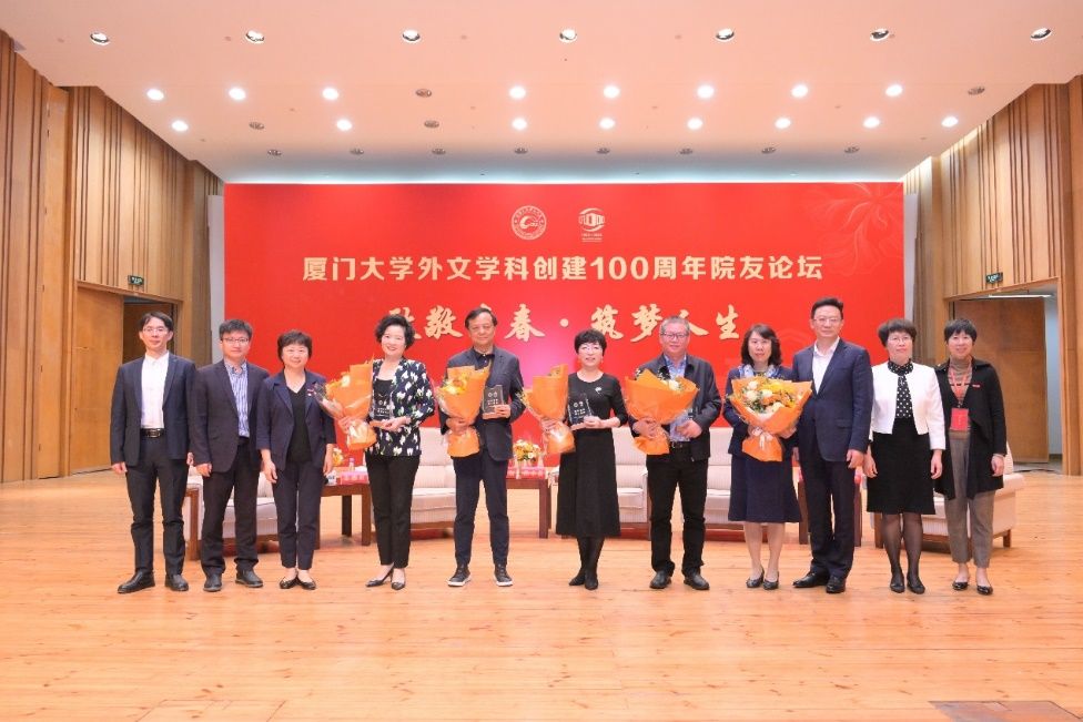 论坛最后,厦门大学党委常委、组织部部长、统战部部长孙理老师为论坛嘉宾们颁发纪念牌,感谢他们诚挚的分享和对外文学院发展的贡献。学生代表也为他们送上了精心准备的鲜花。外文学院珍贵的情谊,如同鲜花阵阵清香,萦绕在每一位外文人的心中。