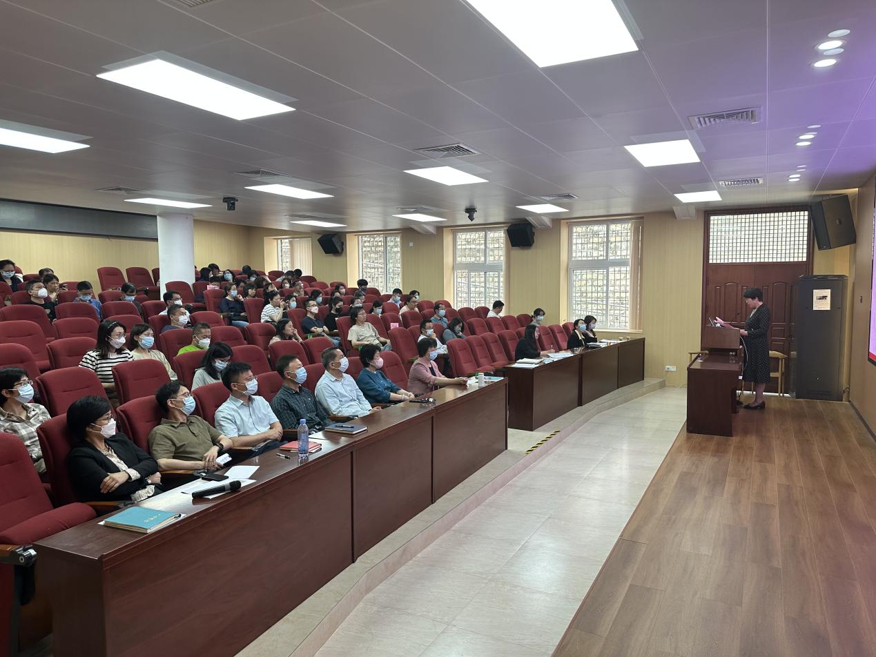 党委副书记张胜强、沈丽秀,副院长辛志英、戴鸿斌、刘悦依次向与会人员详实地汇报分享了各自牵头的有关工作情况。最后,陈菁院长作《回望百年路 风好正扬帆》的专题汇报,向全体与会人员介绍外文学科百年发展进程和取得的丰硕成果,并阐释了外文学科新百年的办学理念和改革举措。