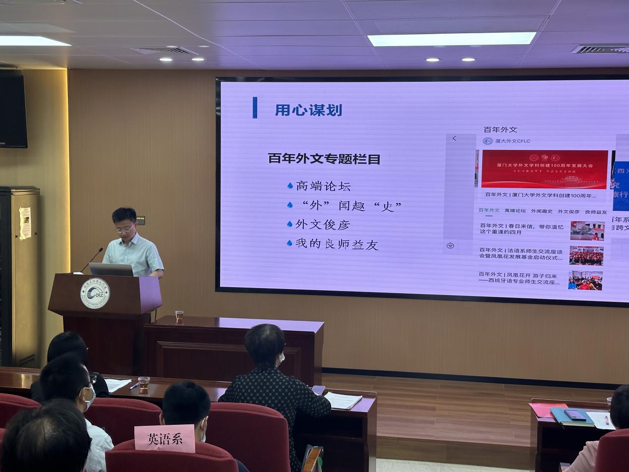 会议强调,新百年新征程已经开启,全体外文人要从现在做起,从自己做起,矢志育人、踔厉奋发,迎难而上、攻坚克难;要进一步强化学科优势,凝练学科特色,提升学科核心竞争力,着力推动学科内涵发展;要坚持“为党育人、为国育才”的初心使命,大力培养一流外语人才;要主动面向国家战略发展需要,紧紧围绕习近平总书记提出的“全球文明倡议”,充分发挥外文学科多语种的优势,为向世界展示真实、立体、全面的中国贡献智慧,为中华文化海外传播、增强中华民族凝聚力和向心力,推动世界文明交流互鉴、促进人类文明进步,展现厦大外文学科的新作为和新担当。