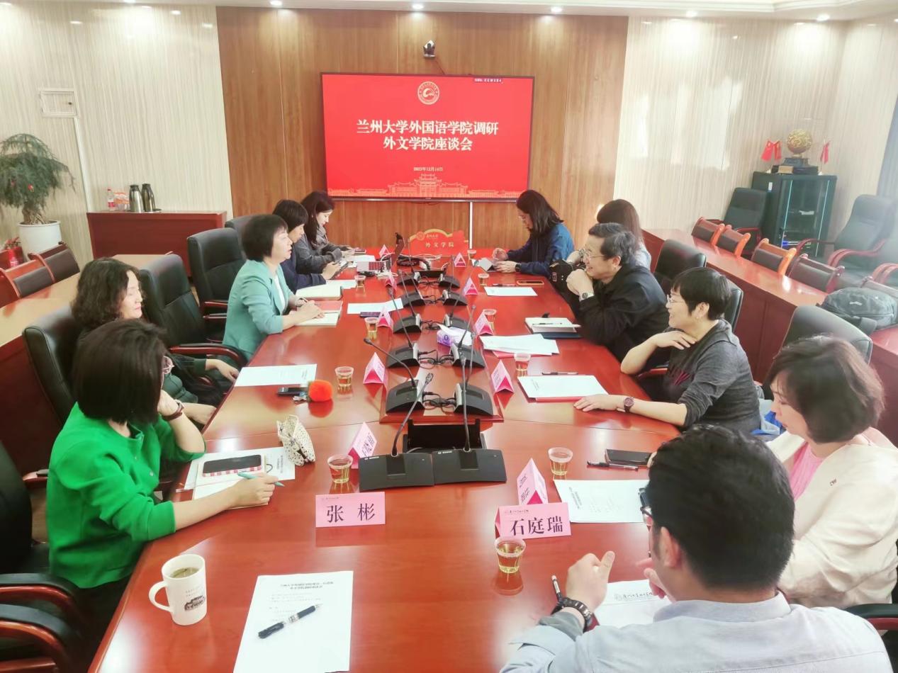 12月14日,兰州大学外国语学院党委书记芦小兵一行6人到访我院,学院党委书记徐琪、副书记沈丽秀接待来访团组并与来宾开展座谈。座谈会由徐琪书记主持。