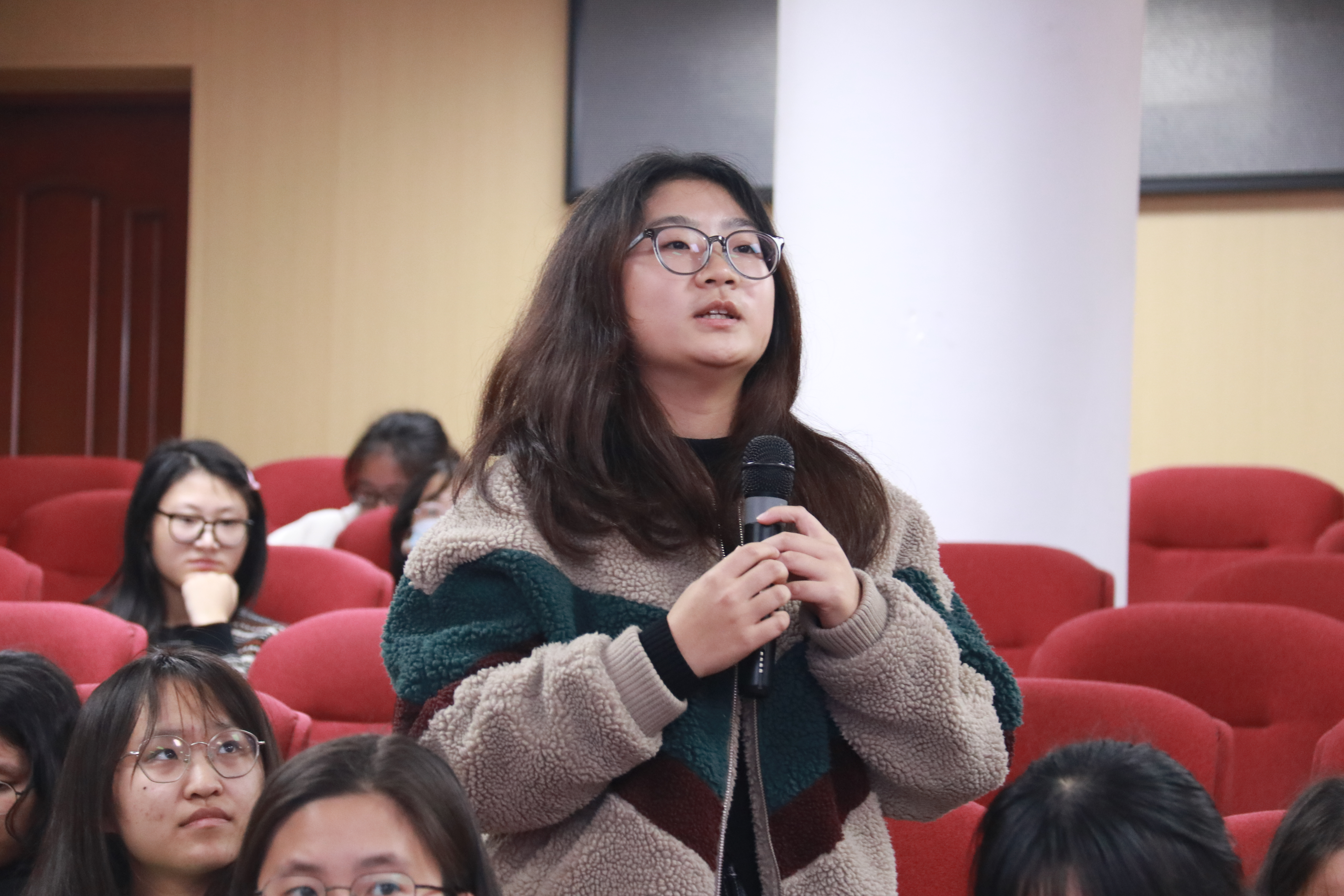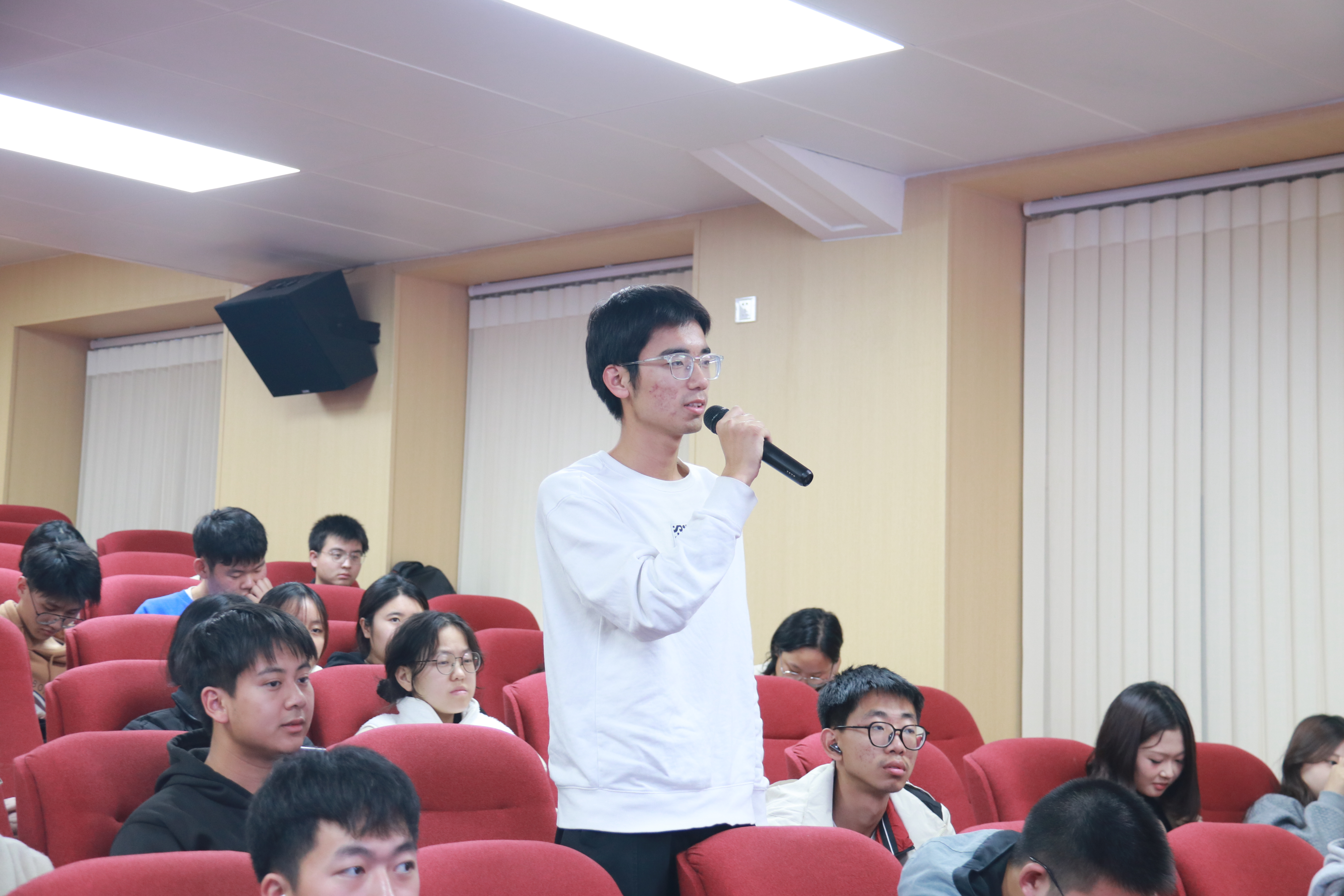 互动环节中,同学们积极提问,黄剑平博士一一耐心解答,给予同学们更多的启发。他指出,在人工智能日益发达的背景下,包括翻译行业在内的很多行业都会遭受前所未有的冲击,但永远不要对学习外语失去信心。学习外语不仅是在学习一种语言,更重要的是在学习一种思维方式。他希望同学们珍惜宝贵的大学生活,更加主动地学习和思考,期许同学们要“用动态的眼光看世界”,多多把握实践机会,坚定信念,实现自我提升。