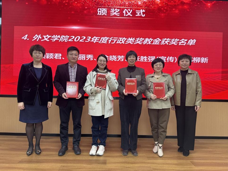 为激励全院教职工奋发有为、争创佳绩,学院对2023年度在教学、科研、行政等工作中取得佳绩的教职工进行表彰。党委副书记沈丽秀宣读了学院各类奖教金表彰文件,党委书记徐琪、院长陈菁,副书记张胜强、沈丽秀,副院长辛志英、江桂英、刘悦等院领导分别为获奖者颁发荣誉证书,感谢他们立足岗位争先创优,为学院事业发展作出突出贡献。