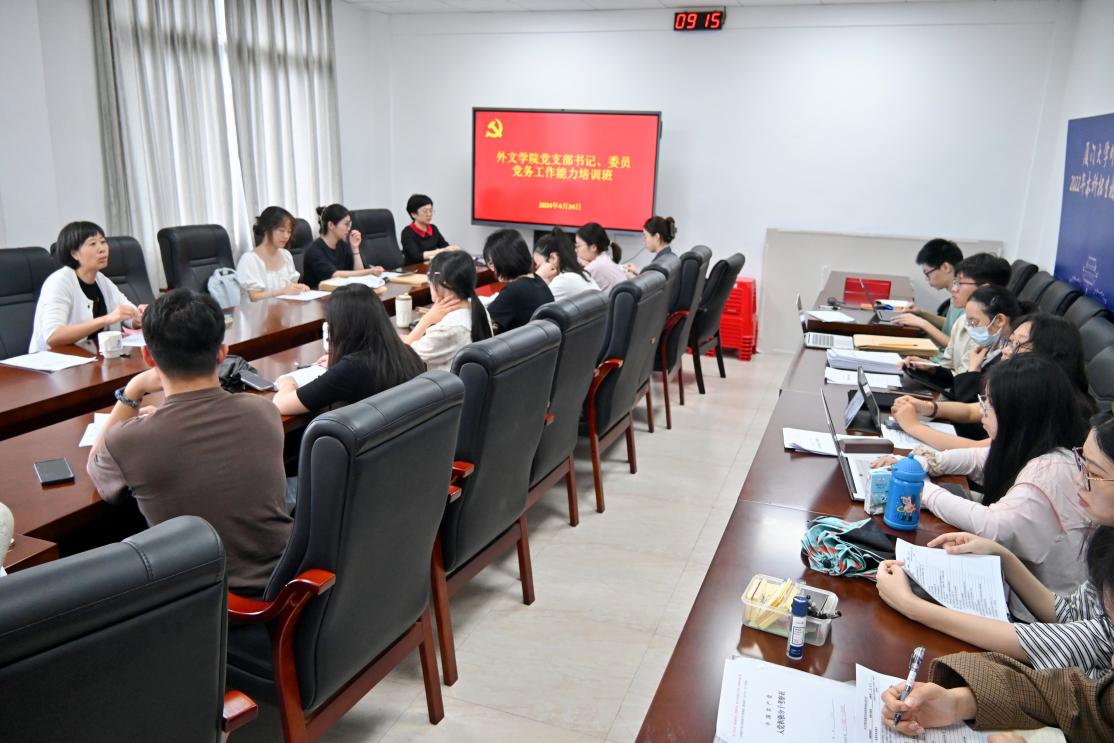 为深入学习贯彻党的二十大精神,贯彻落实新时代党的建设总要求,落实全面从严治党主体责任,全面夯实基层党组织建设,落实校第十二次党代会提出的“培先培优”“领雁领航”“提质提效”计划,4月24日上午,外文学院党委在南光三524启动2024年党支部书记、副书记、委员党务工作能力提升培训班,并面向学生党支部书记、副书记、委员开展第一次培训。外文学院党委副书记沈丽秀出席开班式。
