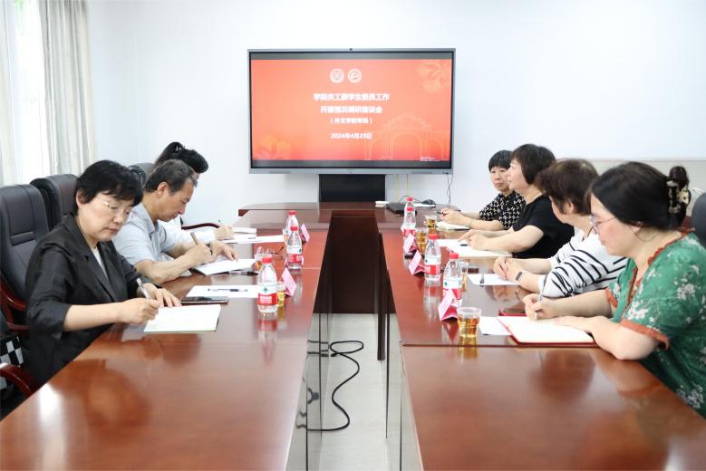 4月29日下午,校关工委常务副主任赖虹凯、副主任侯莲娜、秘书张红疆一行3人莅临外文学院就关工委学生委员试点工作开展调研交流。学院关工委主任、党委书记徐琪,关工委常务副主任陈端端,关工委副主任、党委副书记沈丽秀,关工委秘书、团委书记吴珊珊参加调研。