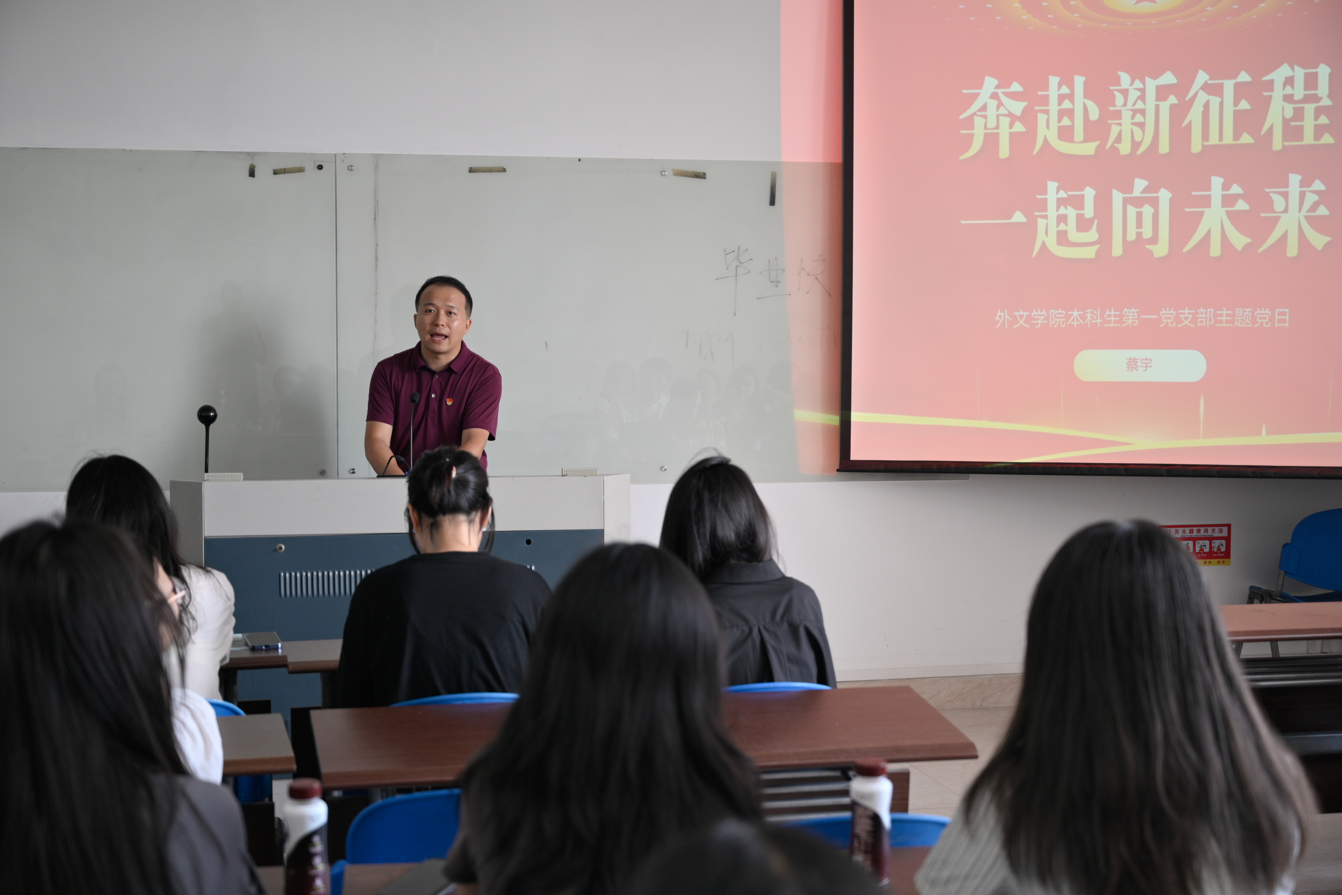 6月20日,本科生第一党支部于南光三415教室开展“奔赴新征程,一起向未来”主题党日活动,为即将加入支部的新同志们送上殷切的希冀,同时向即将步入人生新阶段的毕业生党员们致以美好的祝愿,勉励他们不忘初心,砥砺前行。活动由支部书记蔡宇老师主持,外文学院党委委员、副院长辛志英受邀参会。