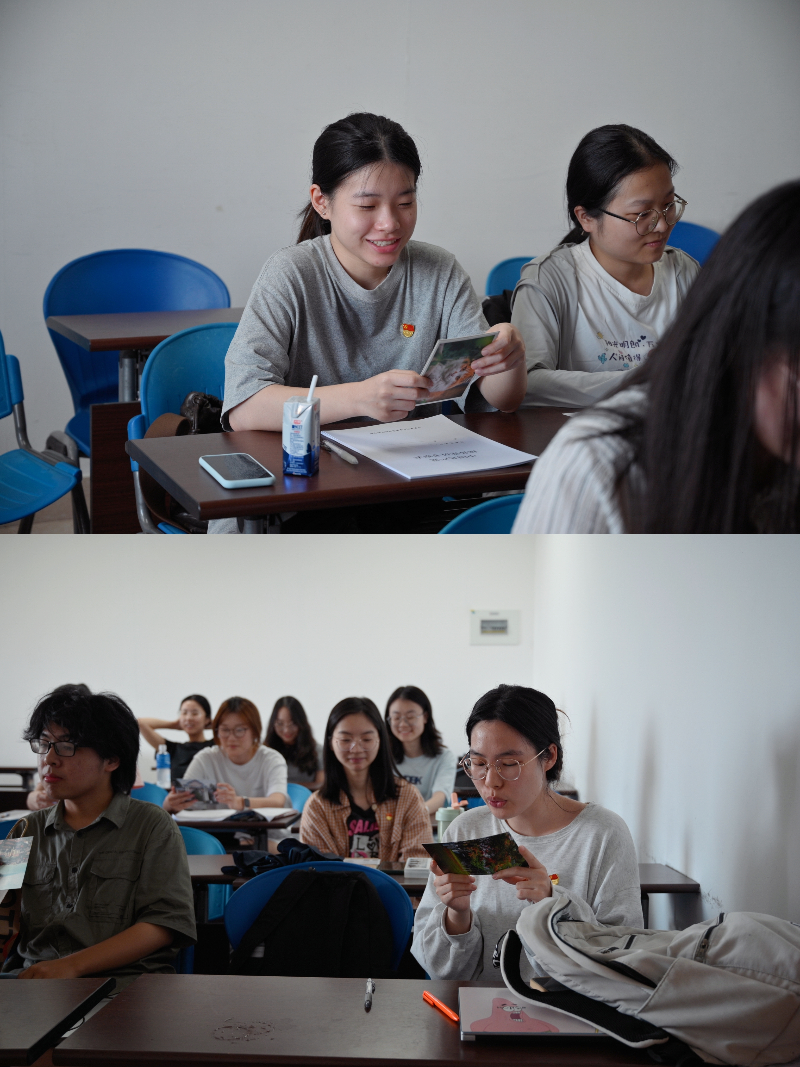 在互送寄语环节,毕业党员和在校党员们交换明信片。精心勾勒的图案、发自真心的寄语,承载着支部成员们满满的祝福与期待。收到明信片的党员纷纷发表感悟。“收到了来自学长学姐的祝福,未来我会继续努力,不负韶华。”“感谢学弟学妹的祝福,在未来的日子里,我会坚定地向期许的方向迈进,不辜负党和人民的期待与关怀。”……人生路漫漫,坚信每一句祝福都会化作同学们前行路上的一缕清风,吹散心中的迷茫与困惑。字句轻启,以语为翼,无尽关怀将跨越山海,奏响毕业与启航的交响。