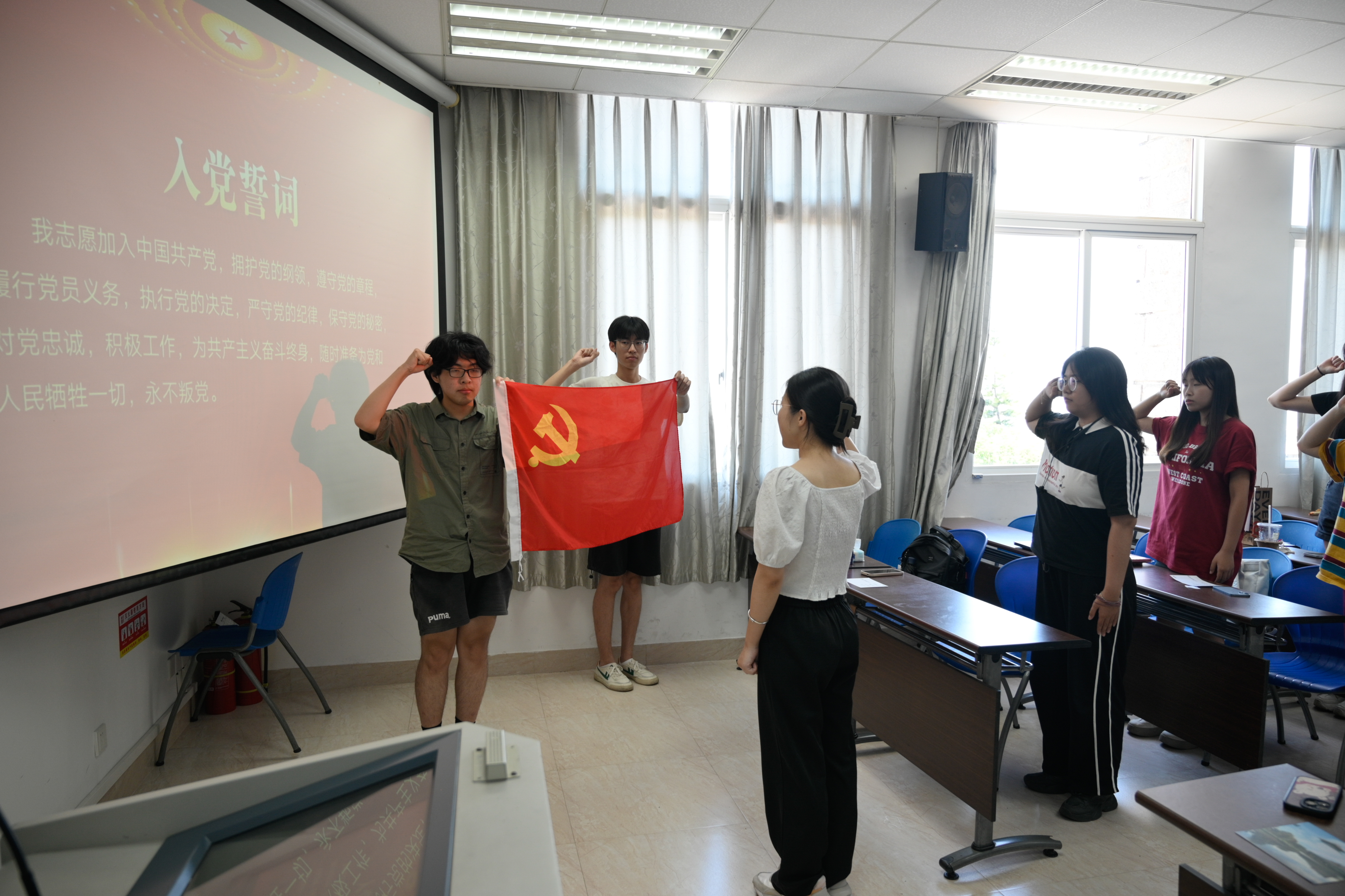 重温入党誓词环节,优秀毕业党员李钰明同志领誓。支部成员们紧握拳头,高举右手,庄严宣誓。铿锵有力的誓言,回荡在教室的每一个角落。这不仅是对党的忠诚和信仰的表达,更是对自己责任和使命的承诺。以拳为号,誓言铮铮,支部成员共怀坚定信念,共筑信仰之墙。