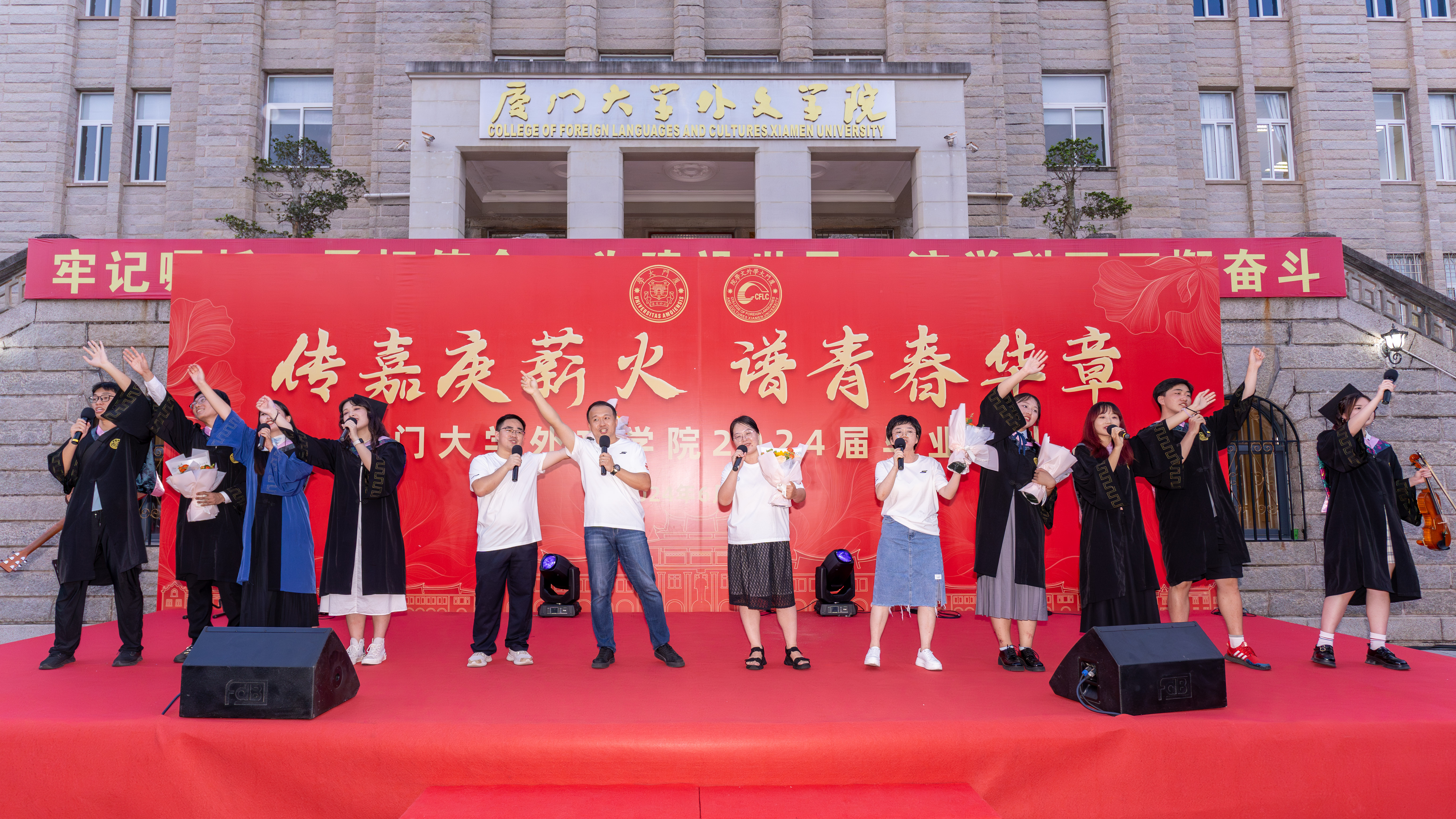 愿祝君如此山水,滔滔岌岌风云起。祝愿外文学院2024届莘莘学子能以“自强不息,止于至善”的姿态屹立于时代的洪流中,以厦大外文百年的荣光为动力,砥砺前行,绽放青春光彩。此去山高路远,我们不说再见!