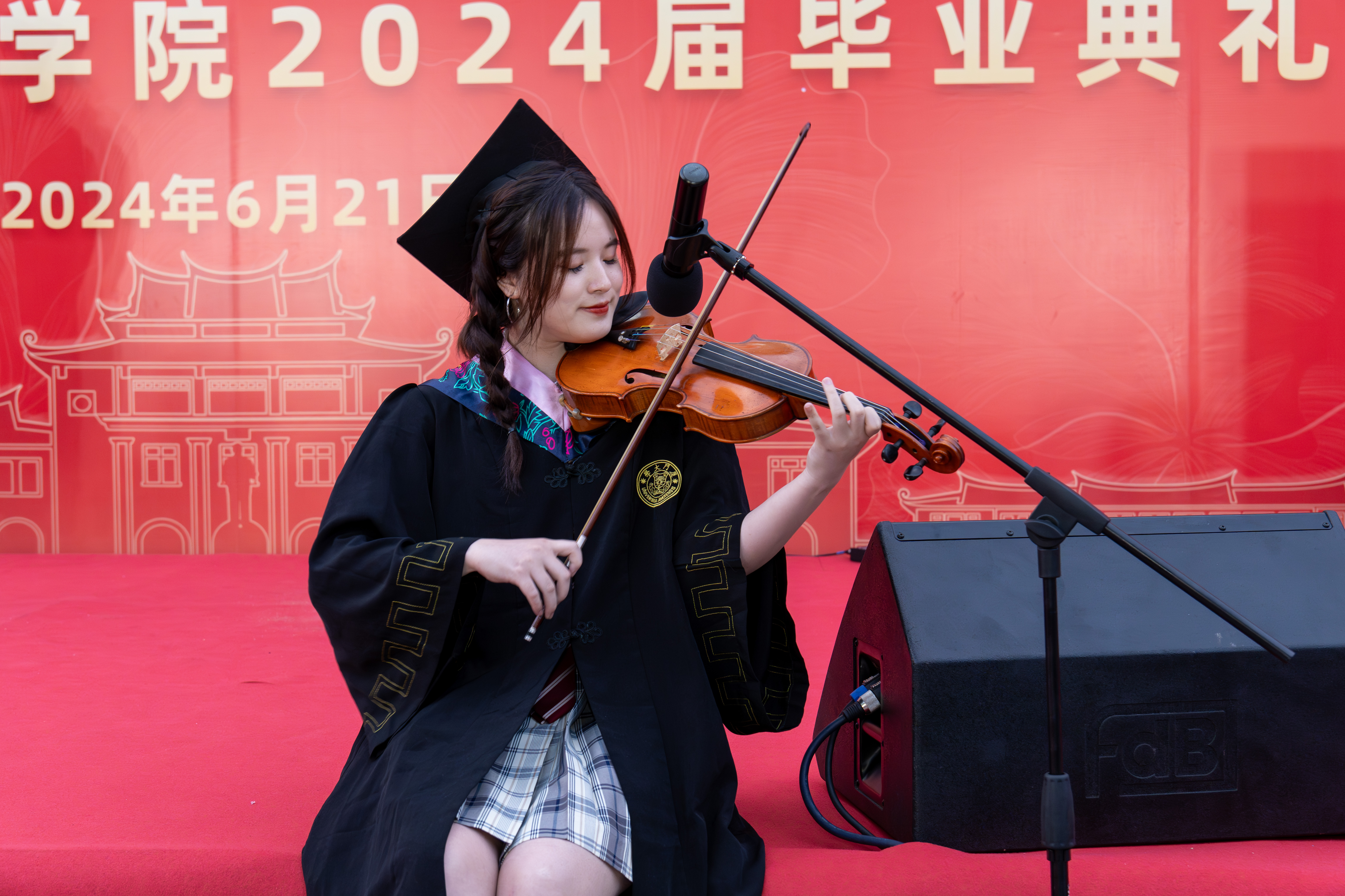 6月21日下午,外文学院2024届毕业典礼在凤凰台举行,学院党委书记徐琪,院长陈菁,党委副书记张胜强、沈丽秀,副院长辛志英,1987级日语专业院友卞开祥等领导和嘉宾,以及各系部负责人、学院秘书、辅导员等出席典礼。典礼由2021级英语口译专业研究生陆美彤、2020级法语专业本科生尚嘉恒主持。