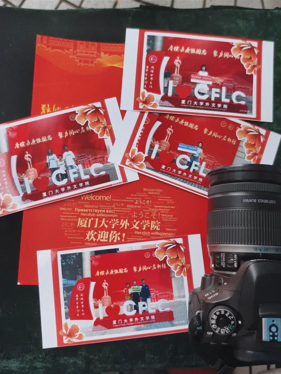 学院还特别设置了拍照打卡点,为新生拍下大学第一张照片。无论是记录初入校园的激动瞬间,还是与家人的温馨时刻,这些照片都将成为大家珍贵的回忆,定格厦园生活的美好开始。学院准备了打印机,相片即拍即印,记录新生和外文邂逅的美好瞬间。