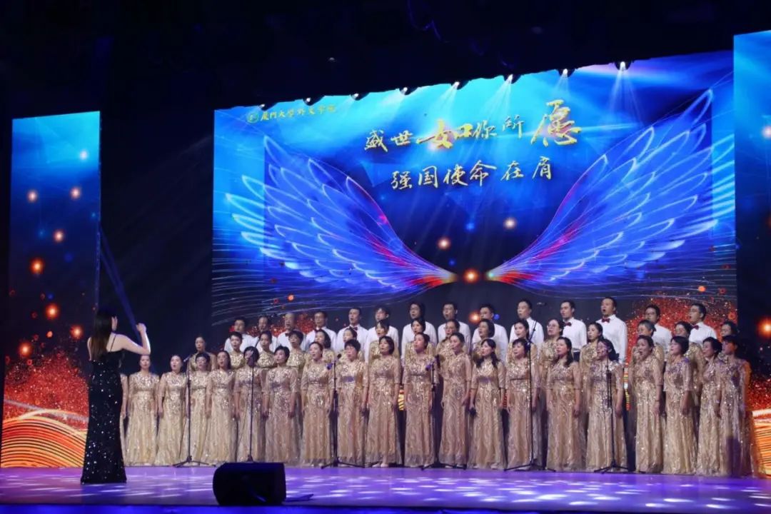外文学院教职工合唱团精彩演绎了歌曲《如愿》,他们用饱含深情的歌声,向陈嘉庚先生致以崇高的敬意,表达了对祖国繁荣昌盛的美好祝愿,这份深情与厚意,感染了现场师生,赢得了评委专家的好评,荣获“最佳创意奖”。