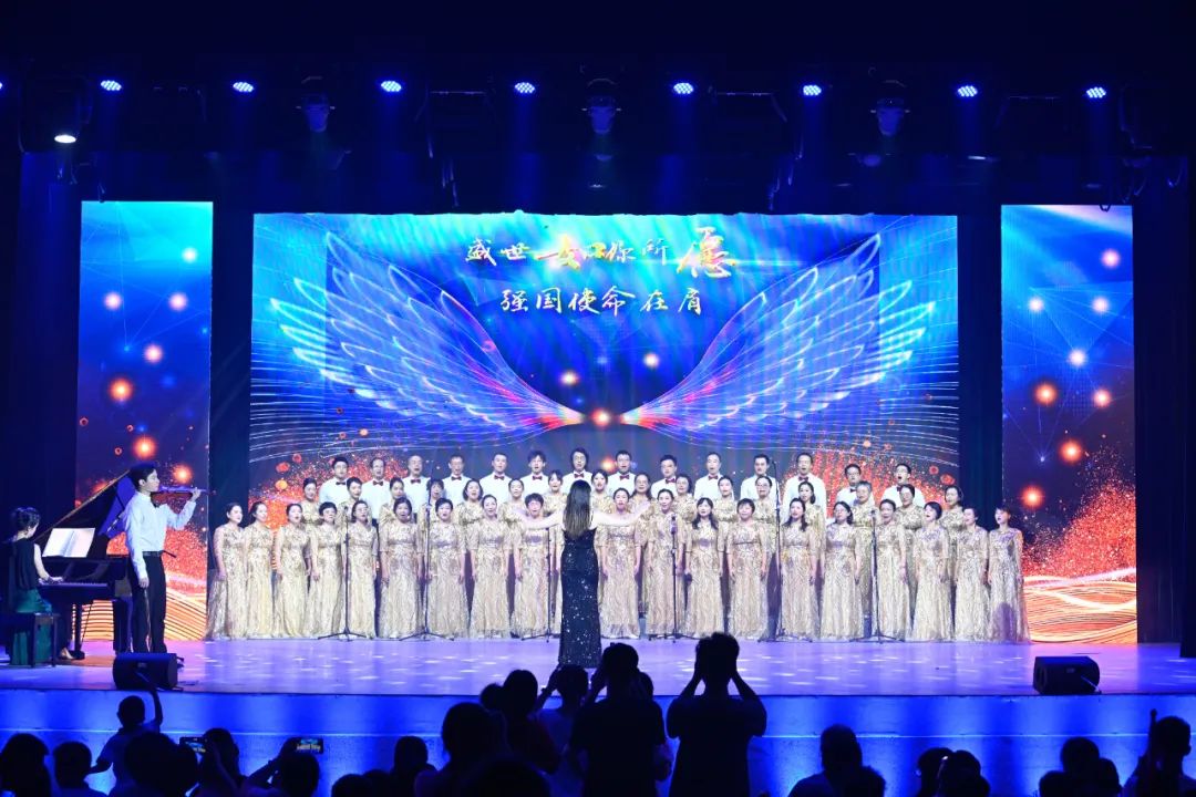 “而我将爱你所爱的人间,愿你所愿的笑颜,你的手我蹒跚在牵,请带我去明天”。舞台上,灯光流转,低声部与高声部旋律交织,悠扬而感人。歌声中,中华民族奋斗的曲折与坚韧历历在目,历史画卷在光影中缓缓铺展,令人感慨万千。