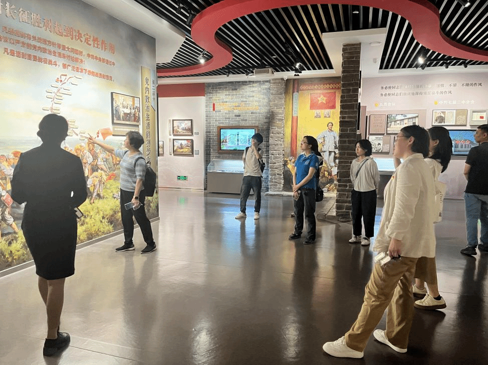 党员们来到了泉州市党内政治生活体验馆。在讲解员的引导下,党员们依次参观了展区“党内政治生活的艰难探索”“党内政治的初步定型”“党内政治生活的曲折发展”“党内政治生活的良性运作”四个部分,通过生动的模拟场景体验毛泽东在延安窑洞讲党课、李子芳和叶挺在上饶集中营里对话、陈望道翻译《共产党宣言》等启迪思想、感人肺腑的历史时刻,重温党在革命时期的光辉历程,感受党内政治生活的历史脉动。徐琪书记还结合遵义会议有关图文资料,深情讲述了这段关乎中国革命生死存亡的历史,使党员们对党在革命年代筚路蓝缕、艰苦卓绝的奋斗历程有了更加深入的了解,深刻认识到红色政权来之不易、新中国来之不易,进一步理解了确立和维护党的领导核心的重要性。