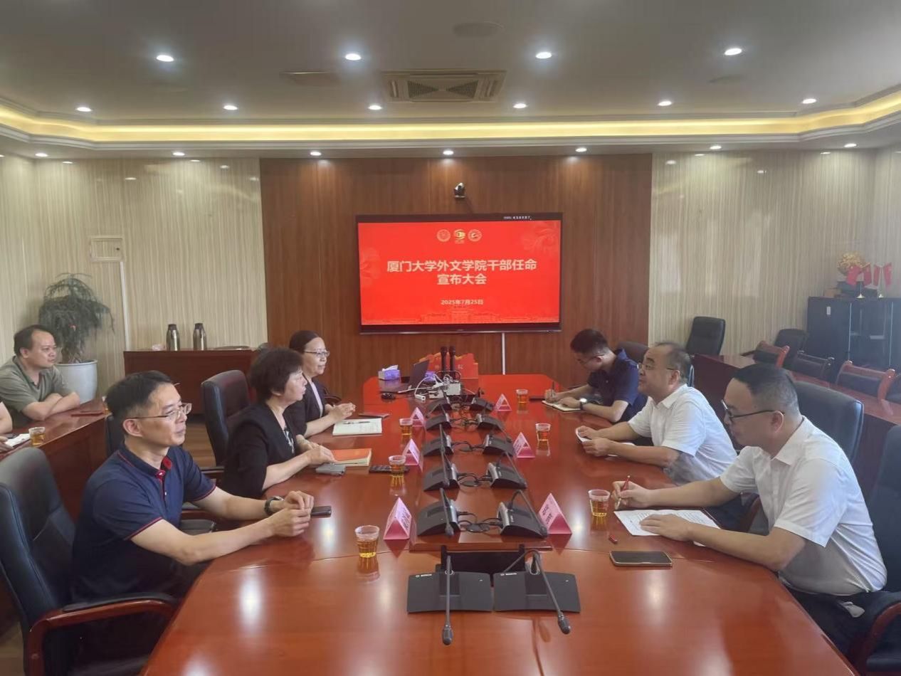 2025年7月25日,厦门大学外文学院召开教师干部会议,校党委常委、组织部部长黎永强出席会议。外文学院领导班子成员、教工党支部书记、科级干部和教职工代表参加会议。会议由黎永强主持。