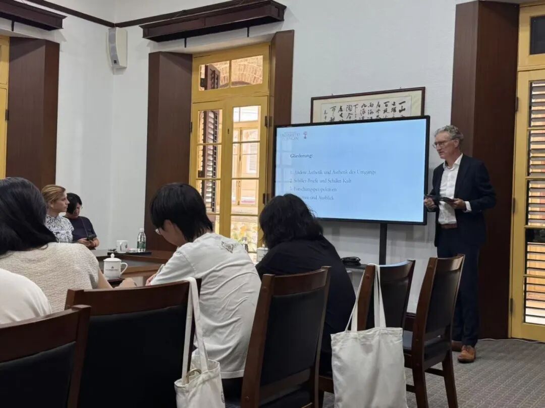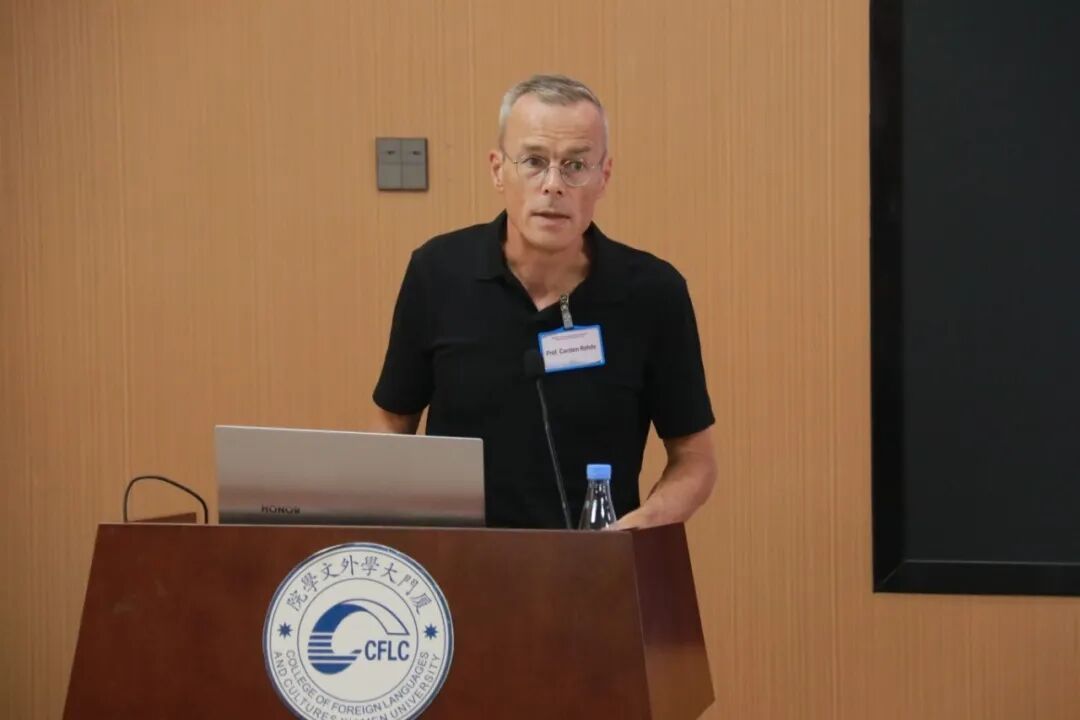主旨报告环节由《文学之路》合作主编、海德堡大学教授Getrud Maria Rösch主持。海德堡大学教授Burckhard Dücker率先作题为“家庭文学作为社会和当代历史现象的反思空间”的主旨发言。《文学之路》合作主编、复旦大学教授魏育青的报告题为“从红旗到灰云——家庭叙事的多元性与共鸣”,聚焦译介成中文的德语家庭文学作品。中山大学教授Carsten Rohde作“在奥斯维辛集中营与生活艺术之间——以斯蒂芬·瓦克维的自传三部曲《看不见的国度》《新人类》《我母亲的画像》为例”的报告。中国科学院研究员方在庆从跨学科交叉角度,作题为“公众形象与私人自我之间——阿尔伯特•爱因斯坦与文化比较中的家庭形象”的主旨报告。《文学之路》合作主编、马格德堡大学教授Armin Burkhardt则以“家庭语言”概念的不同界定为切入点,作题为《家庭词汇的类型学与构成原则——基于日常及文学作品中的实例分析》的报告。