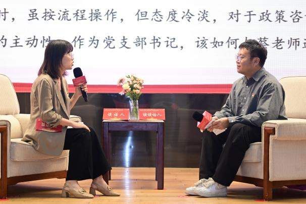 第三轮比赛中,王晓雨与岳子哲分别作为谈话人与被谈话人登场,现场抽签确定分组,按照比赛要求,以情景再现的方式开展谈心谈话。面对“高层次人才政治吸纳”和“党员责任意识强化”等基层党建工作问题,他们迅速进入状态,展开了两场策略与智慧并重的思想交锋。谈话过程既体现思想引领和党性锻炼,也体现了理性依据和人文关怀,展现出参赛人员扎实的党务功底,生动诠释了谈心谈话这一“传家宝”在开展经常性思想政治工作和日常管理中的关键作用,赢得了现场观众的阵阵掌声。