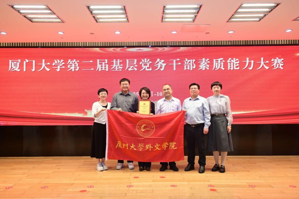 10月31日晚,厦门大学第二届基层党务干部素质能力大赛圆满落幕。由外文学院法日语系联合教工党支部书记王晓雨、“警译求精”警务翻译实践队党支部书记岳子哲和2024级硕士研究生第二党支部书记何淑瑶组成的外文学院代表队凭借出色表现,从44支参赛队伍中脱颖而出,荣获大赛三等奖,展现了外文学院党务干部扎实的理论功底、过硬的业务能力和良好的精神风貌。