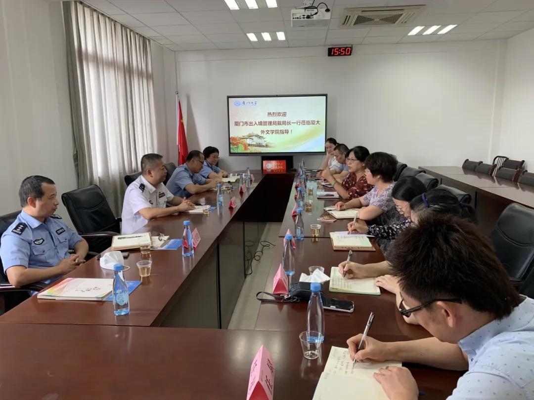 7月20日下午,厦门市出入境管理局戴局长一行莅临外文学院共商战略合作事宜,外文学院党委书记陈志伟、院长陈菁、学院党委副书记沈丽秀、副院长辛志英、英语系主任杨士焯、副主任林斌、日语系副主任任星、教师代表赵肖出席会议,会议在南光三524举行。