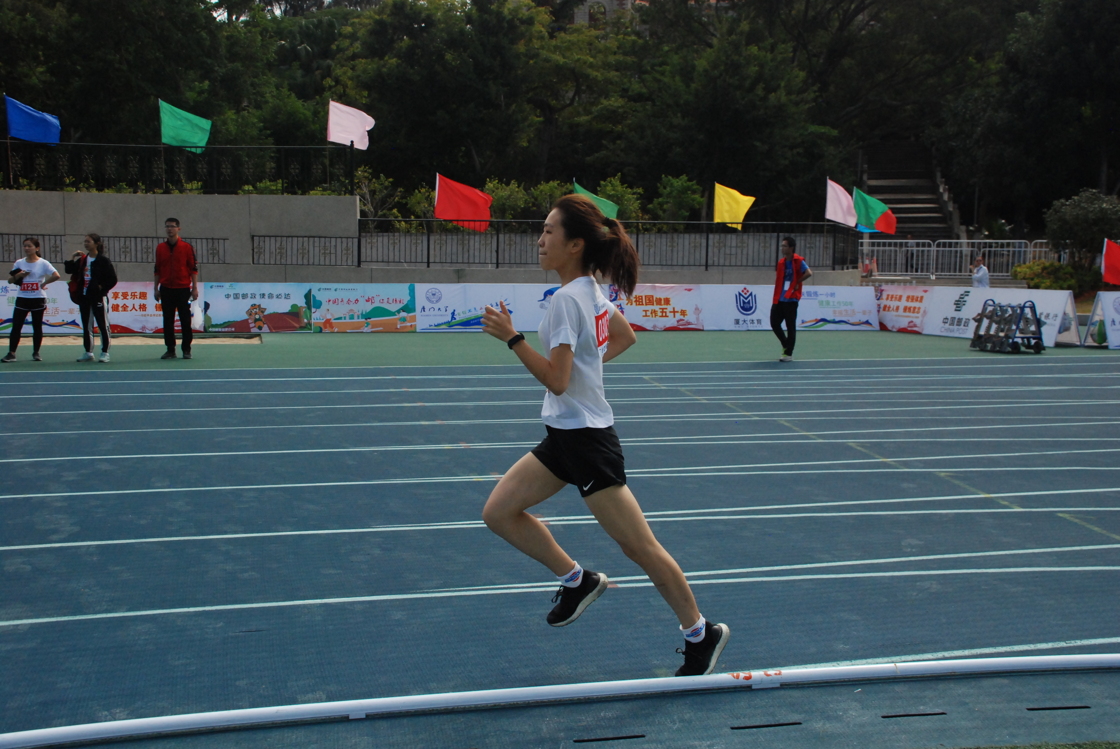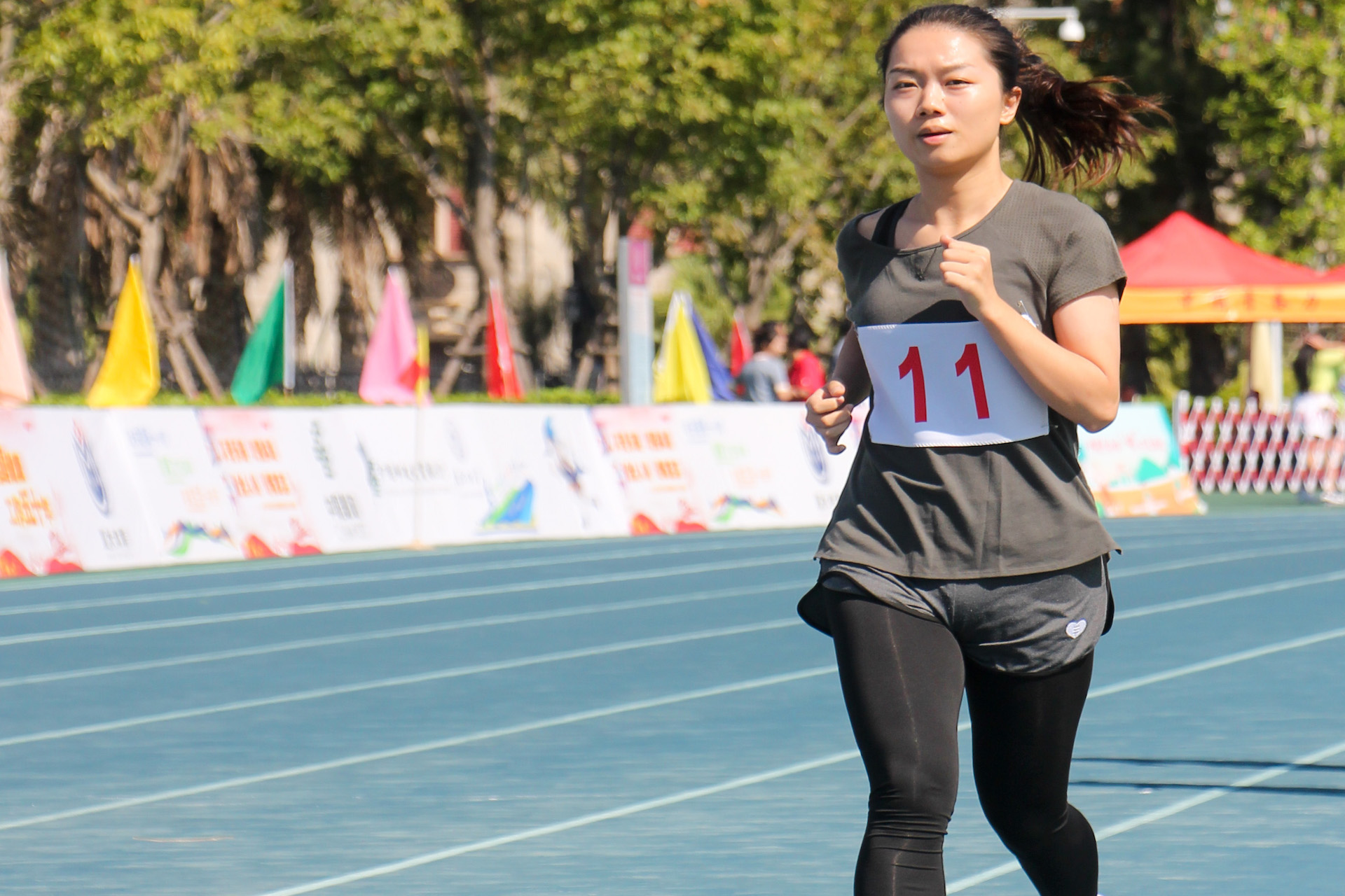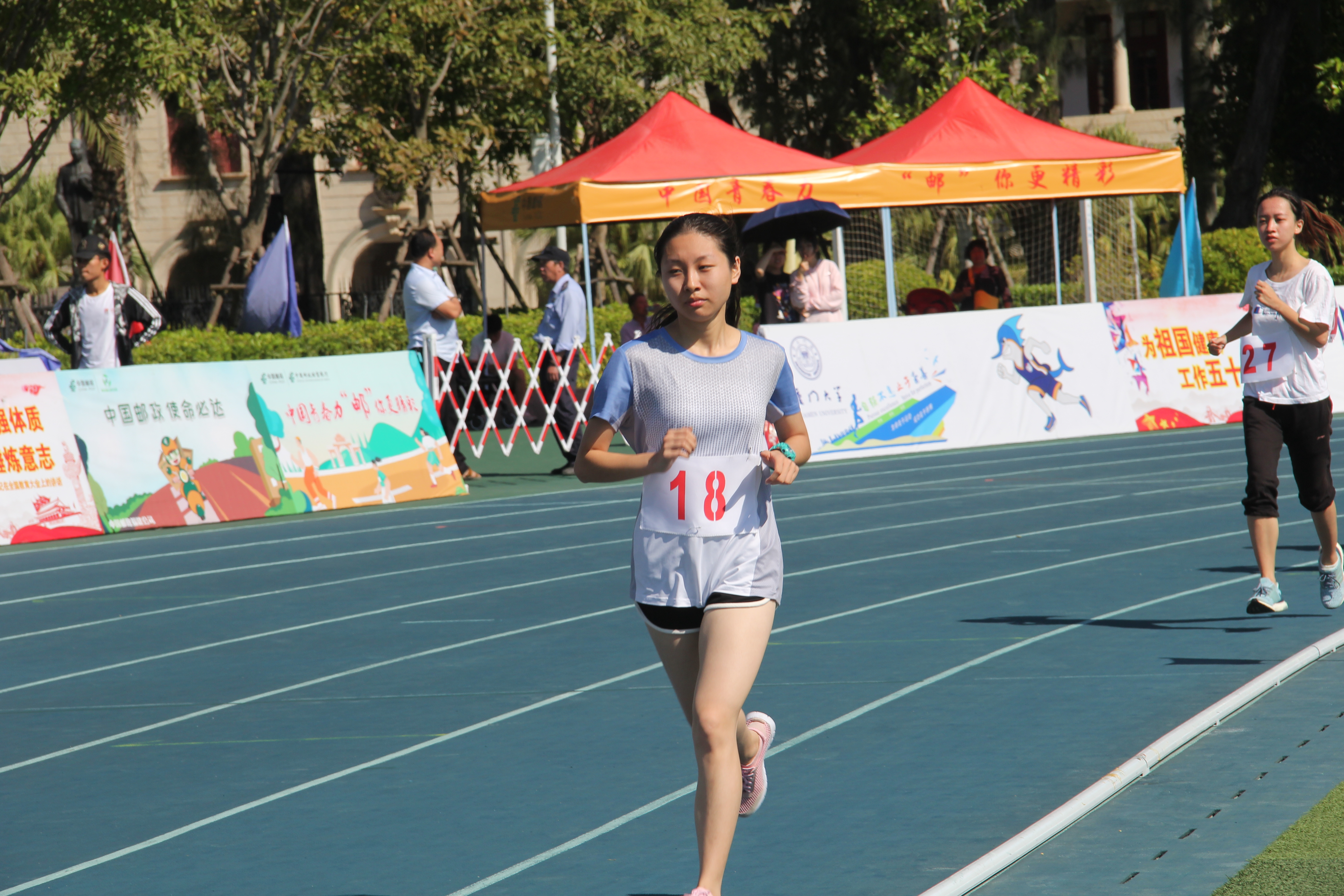 田赛表现不凡,径赛同样出彩。长跑是对耐力的巨大考验,3000米的漫漫征途,见证了外文健儿们坚定的意志和拼搏的精神。蓝色跑道上,2018级德语专业本科生刘晓璐同学迈步矫健,眼神坚定。她用非凡的毅力、超强的耐力、强劲的实力完成了3000米的竞赛,取得了第七名的好成绩,更实现了对自我的挑战。