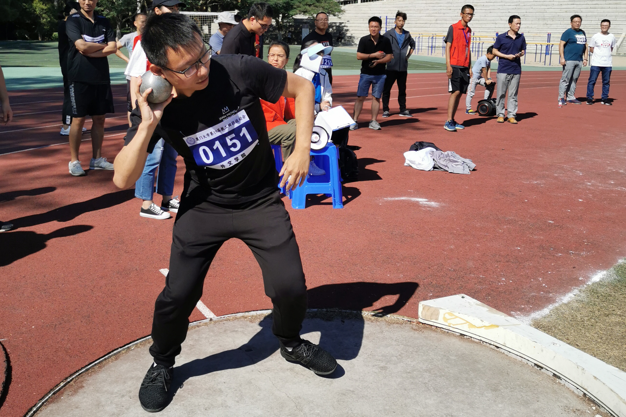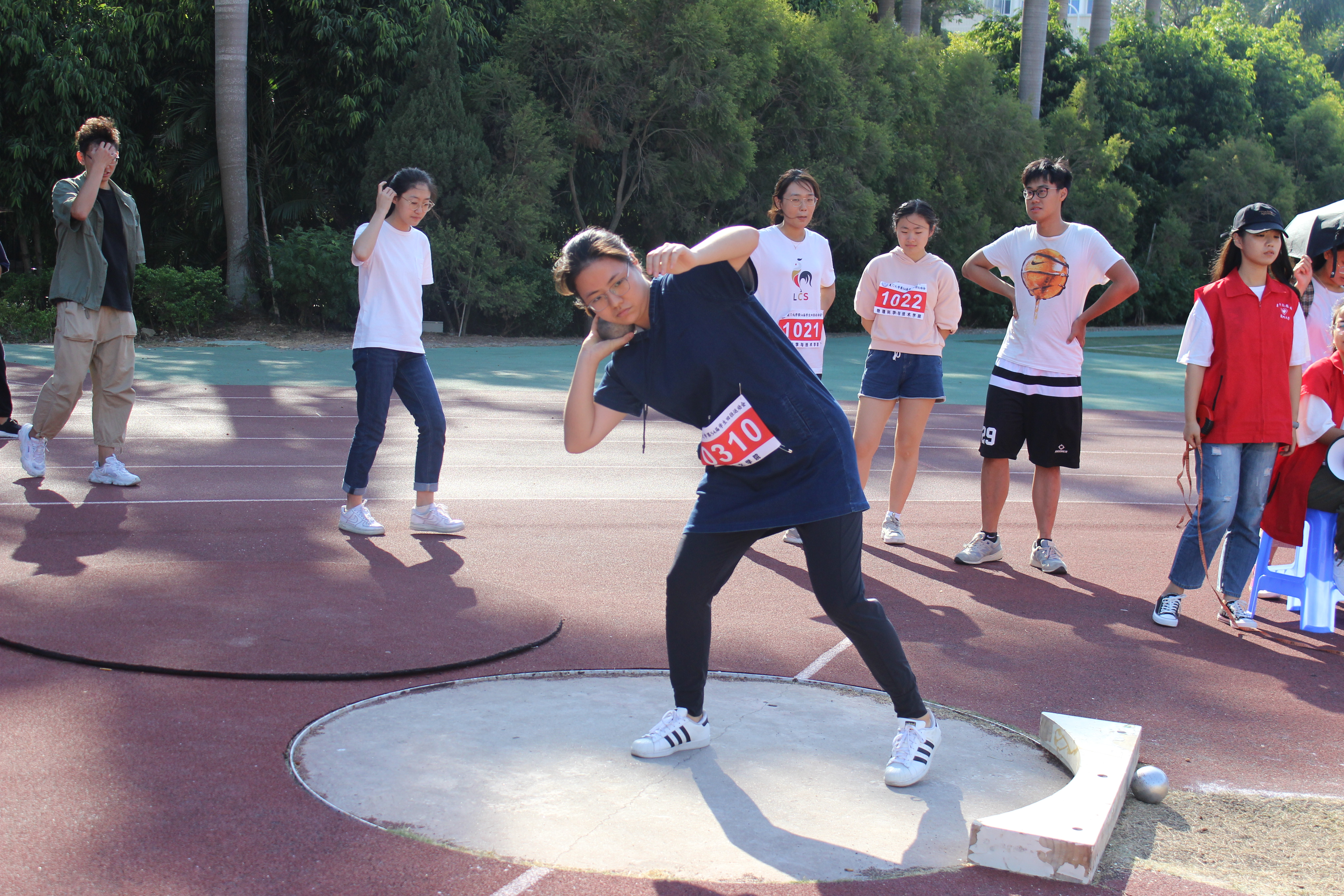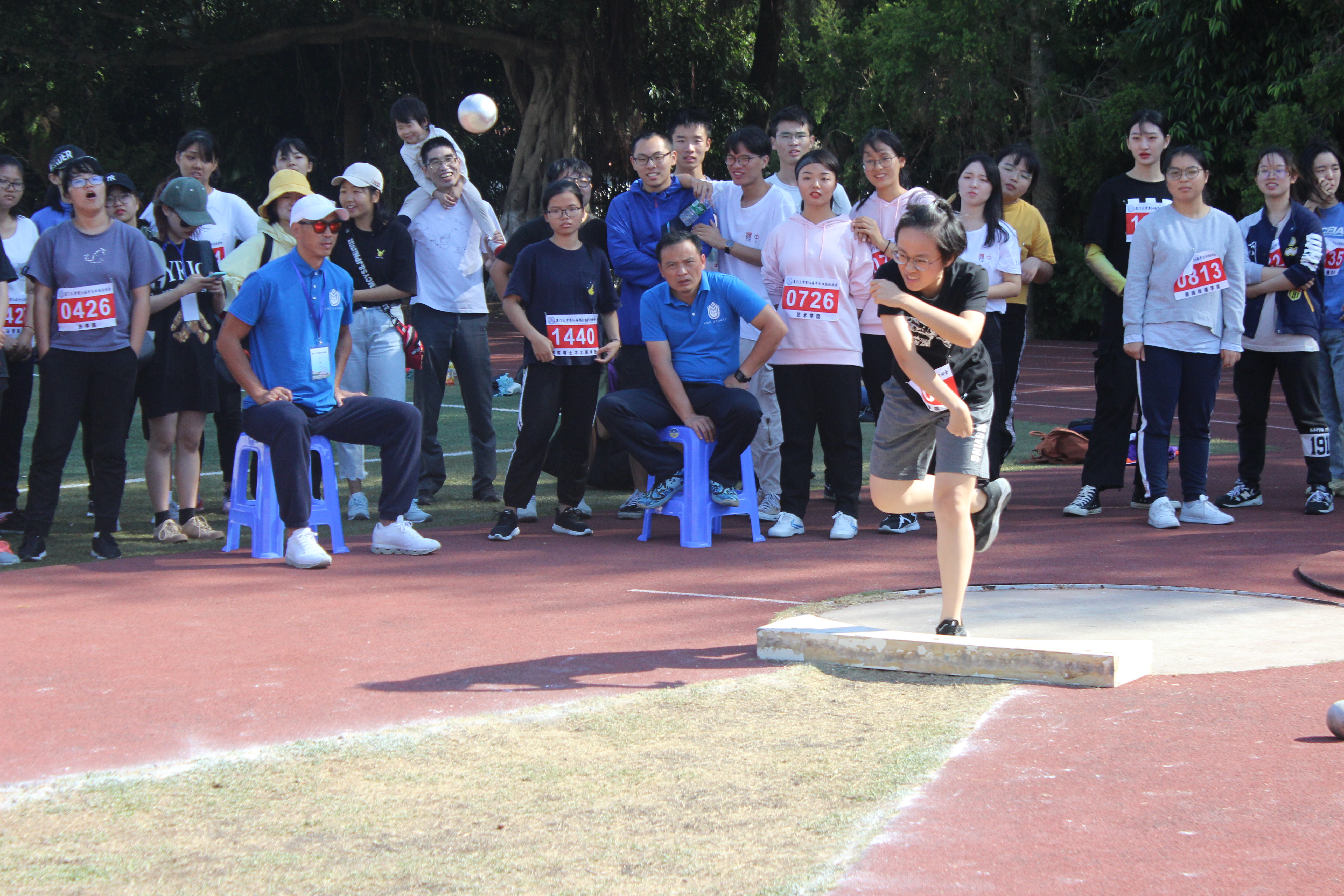 在田赛的另一个重要项目——铅球的赛场上,竞争也同样激烈。今年,2018级英语专业本科生林隽青同学代表外文学院参赛。伴随着发令枪声,她双手抱球,身体缓缓后倾,如弓满弦,蓄势待发!随即转向右手托球,缓而渐疾,铅球在空中划过一条流畅的弧线。在一次次投掷中,她渐入佳境,不断超越,最终投出了8.18米的好成绩,摘得亚军的桂冠。赛后,这位酷爱体育运动的女孩表示对这一次的成绩较为满意,也坦言自己小时候就接触过铅球训练,所以比赛时并没有感到紧张。可见想要在赛上取得惊艳的表现,离不开数年如一日的积淀。