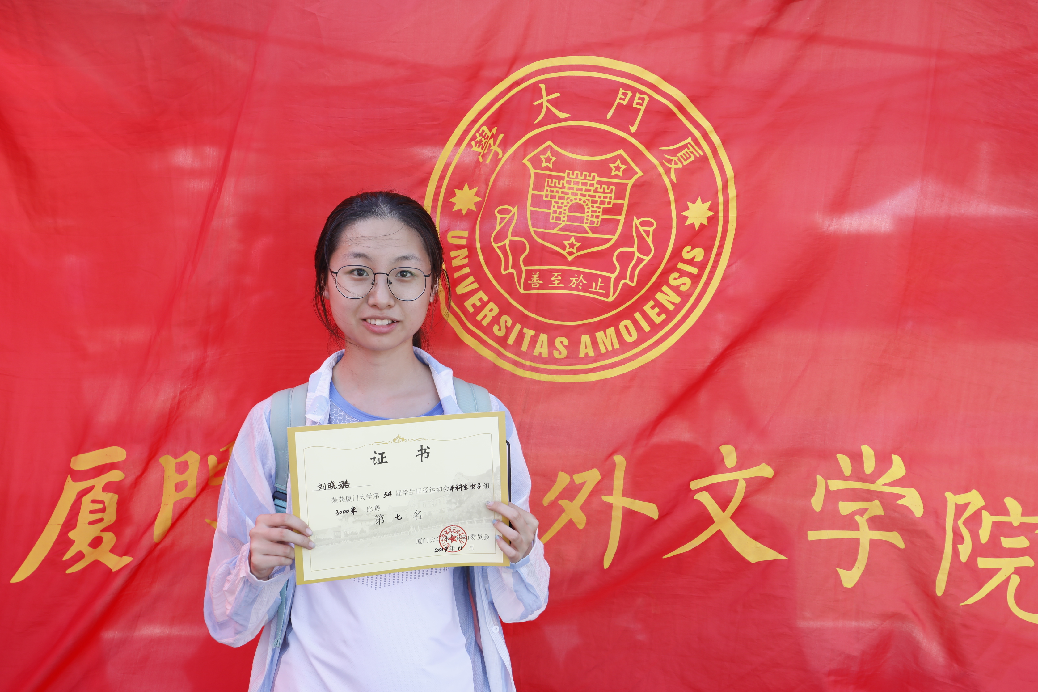 第二年征战田径场的2018级西班牙语专业赵文珍同学则克服困难,在膝盖负伤的不利情况下依然取得了本科生女子组800米第四名和400米第八名的佳绩。“尽力而为,跑到自己最好的水平,不留遗憾就可以了。”这位将体育视作“生活中不能分割的一部分”的体育达人如是说道。身体抱恙却依然全力奔赴赛场,赵文珍同学用她的坚持诠释着外文人永不言弃的体育精神。