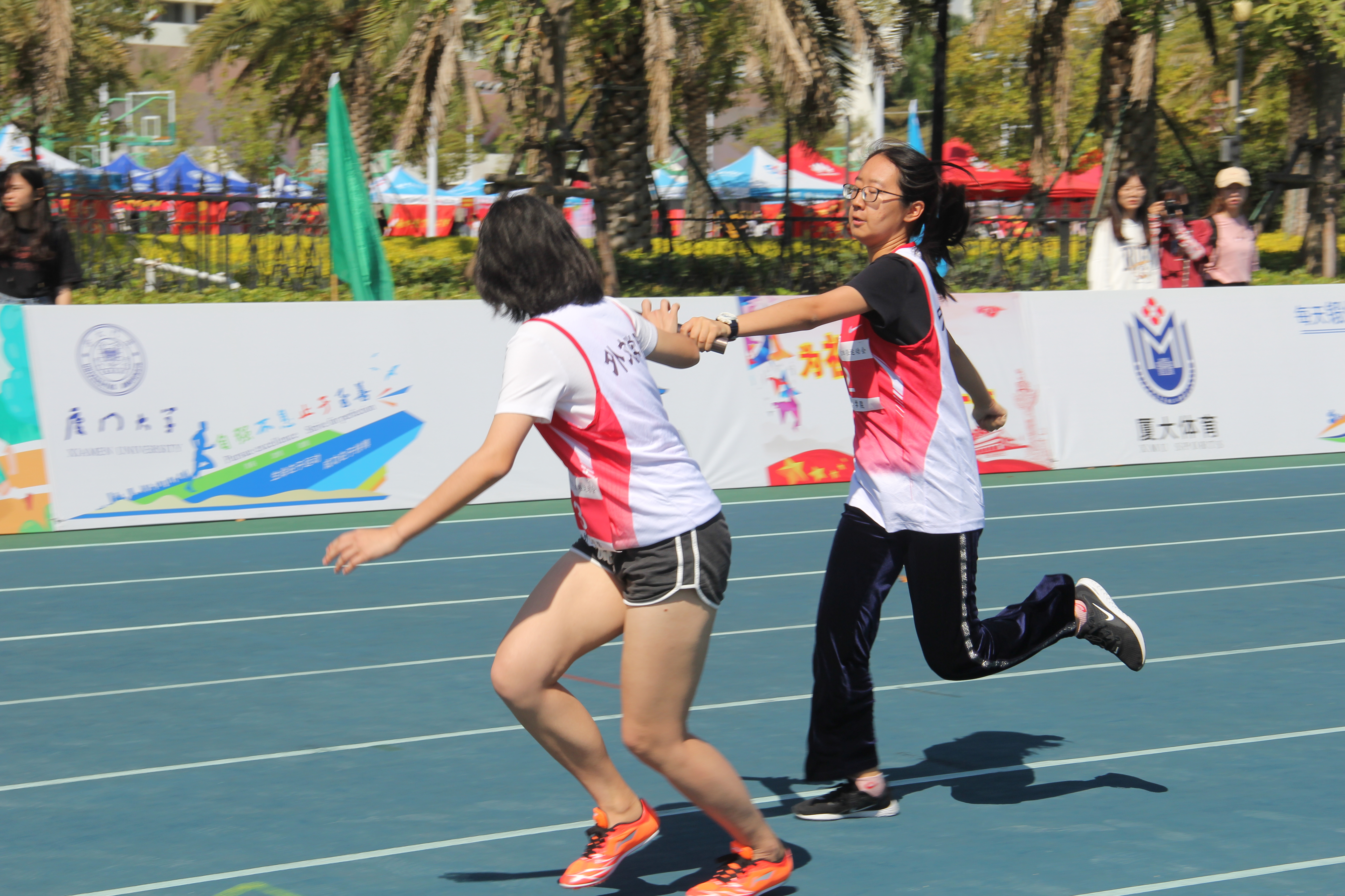 落下风;第二棒邓珊、第三棒杨祉祺完美接棒,继续保持优势;最后一棒陈燕翎则不负众望,在最后关头凭借爆发力反超一人,最终取得了团体第八名的成绩。