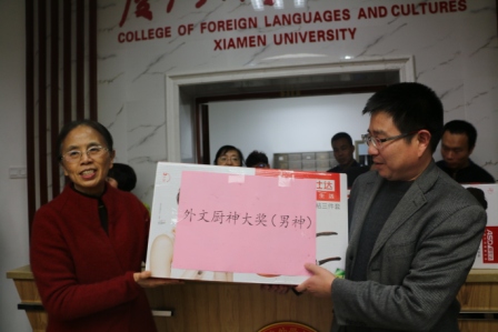 张龙海老师荣获“外文男厨神”称号(杨云良老师代领)