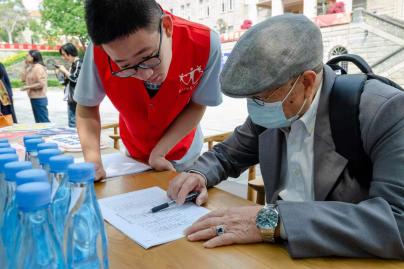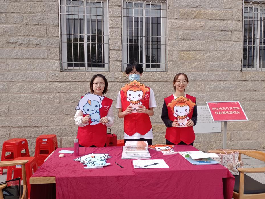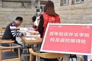 在外文学院自发返校院友接待与服务工作中,志愿者们一大早便在校门口和学院的接待点等待,热情迎接每位院友的到来。志愿者为返校的学长学姐送上百年校庆的纪念品,陪伴他们找寻老照片并签名合影留念,令毕业多年的院友们感受到了回家的温暖。