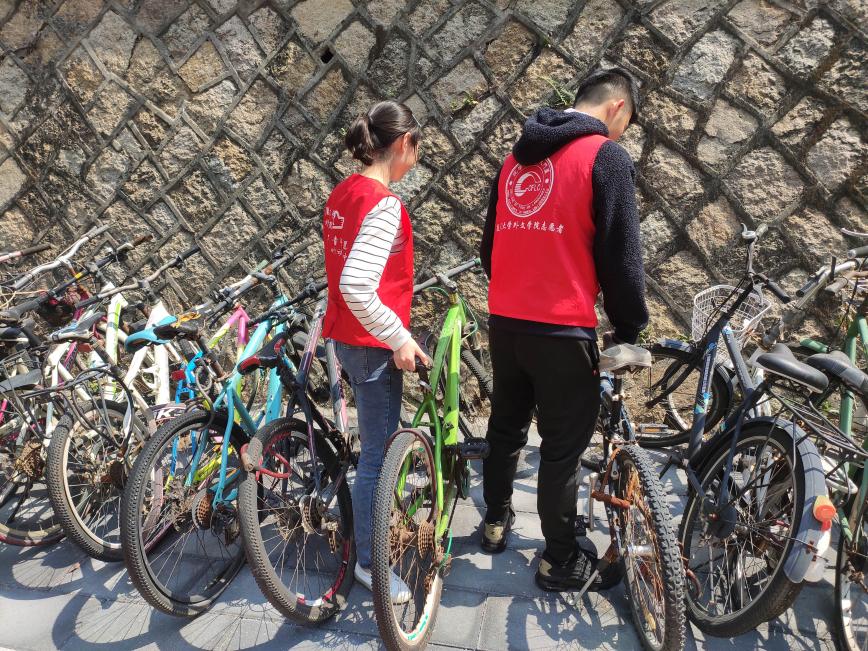 与此同时,学院还招募了50余名自行车停车督导和停放秩序维护志愿者。迎着初升的晨晖,伴着西斜的落日,志愿者们坚守在南光四、基金楼、自钦楼、南光八附近的停车点,细心劝导每位同学遵守秩序、规范停放。一排排整齐的小单车、整洁有序的校园环境,正是志愿者们为学校的百年华诞送上的别样祝福。
