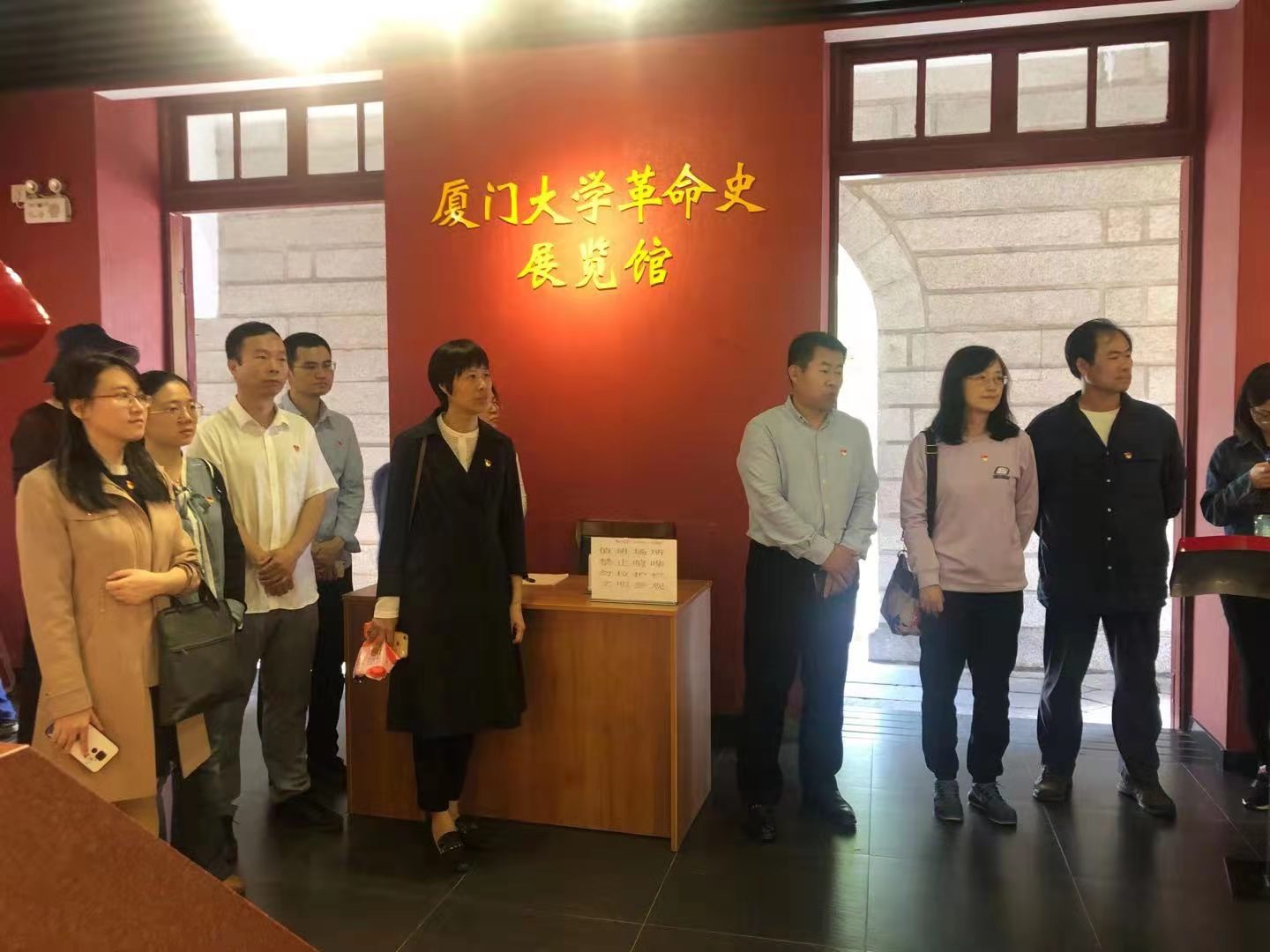参加活动的全体同志都参与了百年校庆各项筹备工作,部分同志已经先行投入到百年党庆筹备中。在讲解员的带领下徜徉两个场馆,大家对两个一百年有着更加深刻的领悟和体会。在校史馆,大家首先驻足在习近平总书记致厦门大学建校100周年贺信前,再次共同学习习近平总书记对我校的重要嘱托。随后,顺着馆内校主雕像坚毅的视线所指的方向观看浓缩了我校“四种精神”的3D灯光秀。之后,沿着布展顺序参观了珍贵的展品和史料。在大屏幕前观看宣传片时,大家自发地为学校百年来为党育人、为国育才,不断提升办学质量和水平所取得的傲人成果长时间鼓掌。在革命史馆,大家重温了照亮真理与革命的“囊萤之光”,以星火燎原之势,推动了闽南、闽西地区革命的迅猛发展,为厦门乃至福建的现代革命史掀开崭新一页的光辉历程。作为与党同龄、为国而立的百年名校中的一员,同志们无不为我校历经一个世纪所积淀的深厚爱国基因和光荣革命传统骄傲和自豪,也更加充分地认识了中国共产党为什么“能”、马克思主义为什么“行”、中国特色社会主义为什么“好”。
