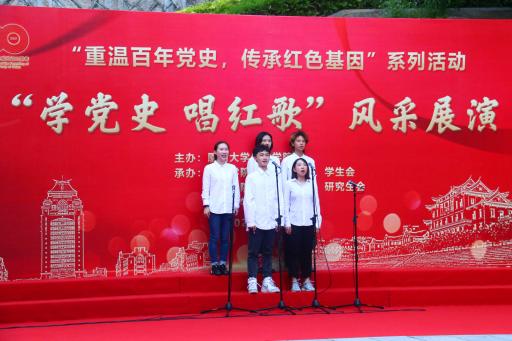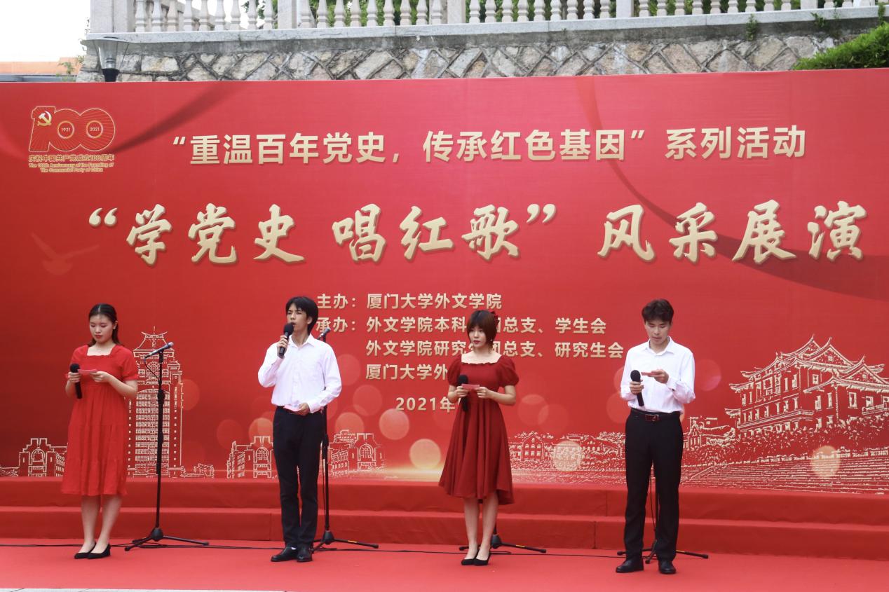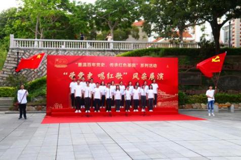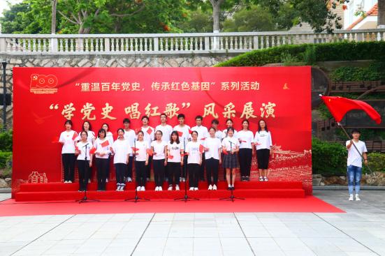 岁月不居,时节如流,中国共产党走过了一百年的光辉历程。为贯彻落实习近平总书记在党史学习教育动员大会上的重要讲话精神,引导广大外文学子学党史、强信念、跟党走,5月17日下午,外文学院在凤凰台成功举办“重温百年党史,传承红色基因”系列活动之“学党史 唱红歌”风采展演活动,厦门大学党史学习教育第五指导组副组长邹海燕,厦门大学团委副书记梁振伟,外文学院党委书记陈志伟、党委副书记马龙、沈丽秀莅临现场,活动吸引了众多师生驻足观看。
