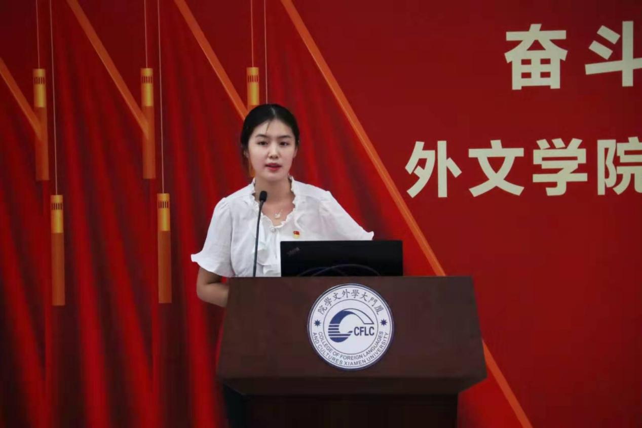 随后,沈丽秀副书记宣读了学院“七一”表彰决定。在建党百年的重要时刻,外文学院党委对过去一年来在争创一流学科、推进内涵建设、维护和谐稳定、服务师生员工、夯实基层组织方面所涌现出的先进党支部及优秀党支部书记、党务工作者、共产党员进行了表彰,引领号召全院各党支部和广大党员站在新百年的历史起点上,以受到表彰的先进集体和优秀个人为榜样,争做“四讲四有”合格党员,进一步发挥党支部“七个有力”,为加快学校“双一流”建设作出新的更大贡献。本次共有3个党支部,31名个人受到学院表彰。颁奖仪式后,受到校、院表彰的师生党员代表王力平、陈雅燕、潘宁结合自身学习和工作实际,用朴实的话语、生动的事例,表达了对党的赤诚之心和为学院各项事业发展再立新功的决心。