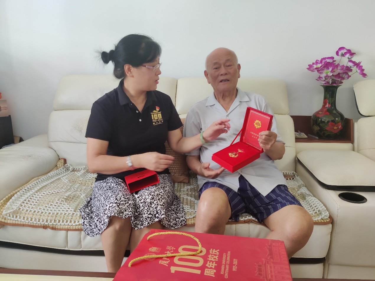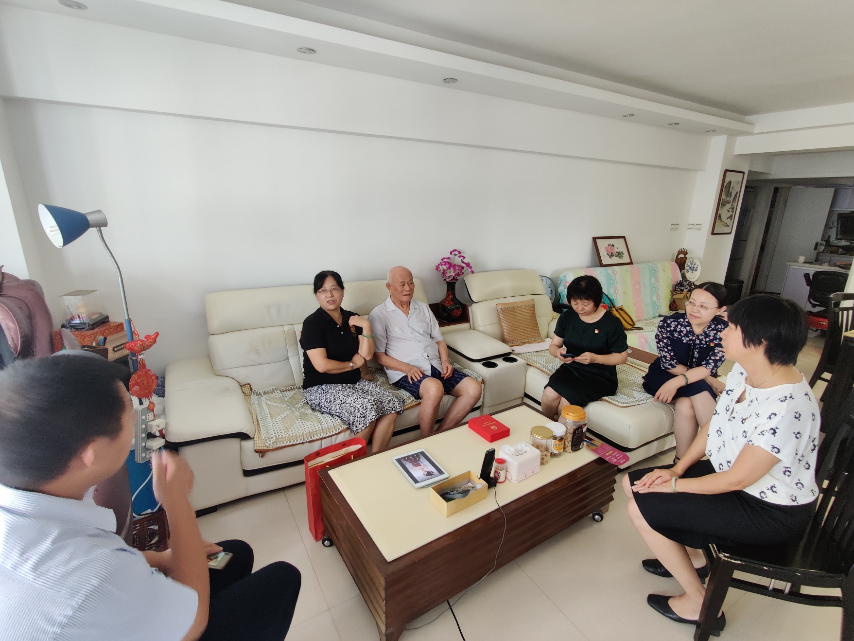 在两位老同志家中,陈志伟与两位老党员促膝交谈,关切询问日常生活和身体健康状况,邀请两位老同志讲述他们个人的革命历史,共同回顾我们党的百年光辉历程。曾淑萍回顾了在菲律宾期间的革命经历以及回国后参加社会主义建设的光荣历史。曾老师自小学时就通过身边的进步人士、文学作品接触到马克思主义思想。1942年,年仅14岁的她即投身革命,1944年正式加入菲律宾共产党。曾老师在菲积极投身抗日爱国一线工作和抗战胜利后党的地下活动。1958年回国后,积极参与党的侨务、高等教育等工作,为厦门大学、华侨大学英语专业建设作出了卓越贡献。连淑能着重介绍了驻外期间和建院期间的历史。连老师1966年入党,在我校毕业后留校任教,七十年代外派圭亚那驻外,八十年代着手人工语言与机器翻译的前沿科研项目,面对IBM公司和纽约州立大学的诱人邀请,他毅然选择回国并继续完成由其承担的国家863计划机器翻译研究并取得了优秀成果。九十年代,他应邀赴英国牛津大学及剑桥大学作高级访问学者,形成长篇考察报告《牛津剑桥之谜》上报教育部,应邀到全国各大高校做了200多场报告。1999年,我校进行校内管理体制改革,组建外文学院,连老师担任首任院长。