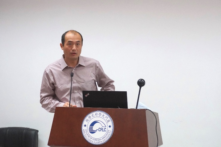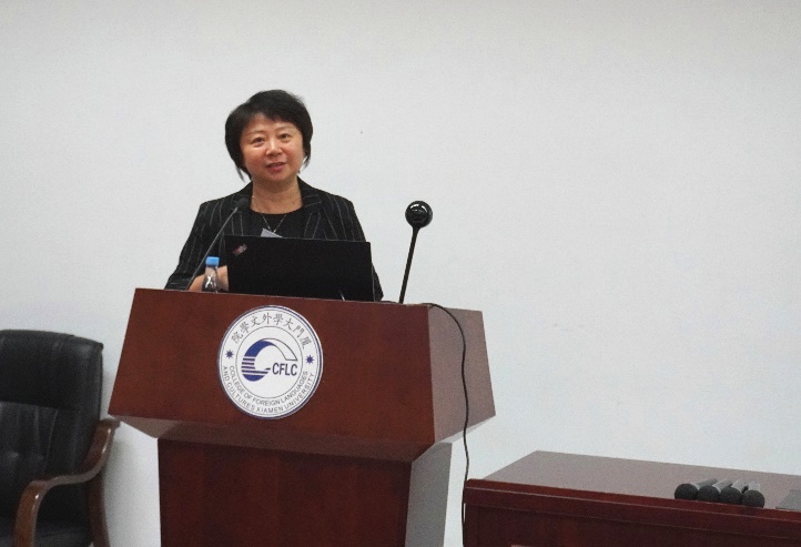 首先,教务处副处长黄艳萍代表学校部门致辞。她指出,为开办这一跨学科人才培养项目,学校多次会同两院进行商讨,对全新的培养模式与培养方案进行反复论证、深入沟通,两院也都拿出了最好的师资力量,为同学们的成长成材保驾护航。此班涵盖了英、日、法、俄、德、西6个外语主修专业的同学,所辅修的会计学、财务管理课程将采用全英文授课。为此,她向同学们提出了三点期望:第一,希望同学们明德至善,厚植人文情怀,以“阐扬世界文化”;第二,希望同学们勇于接受挑战,能够真正实现创新融合,努力全面发展;第三,希望同学们能够胸怀祖国,传承厦大“四种精神”,成为红色的种子。在百年校庆来临之际,在美丽的校园中开启自己全新的生活。