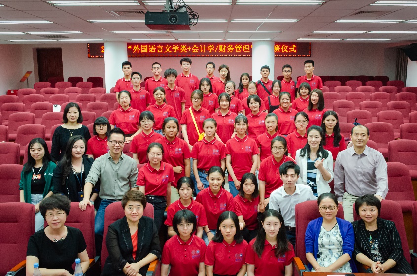 2020年10月21日晚7点30分,厦门大学首届“外国语言文学类+会计学/财务管理”班开班仪式在德贞楼112报告厅举行。招生办主任刘艳杰,教务处副处长黄艳萍,外文学院院长陈菁教授、副院长徐琪教授、班主任韩潮教授、教学科科长陈雯娜,财务管理与会计研究院教师代表阮军博士、侯芳芳博士、教学秘书赵双蕾、学生代表,以及2020级“外国语言文学类+会计学/财务管理”班39位同学共同出席了本次开班仪式。