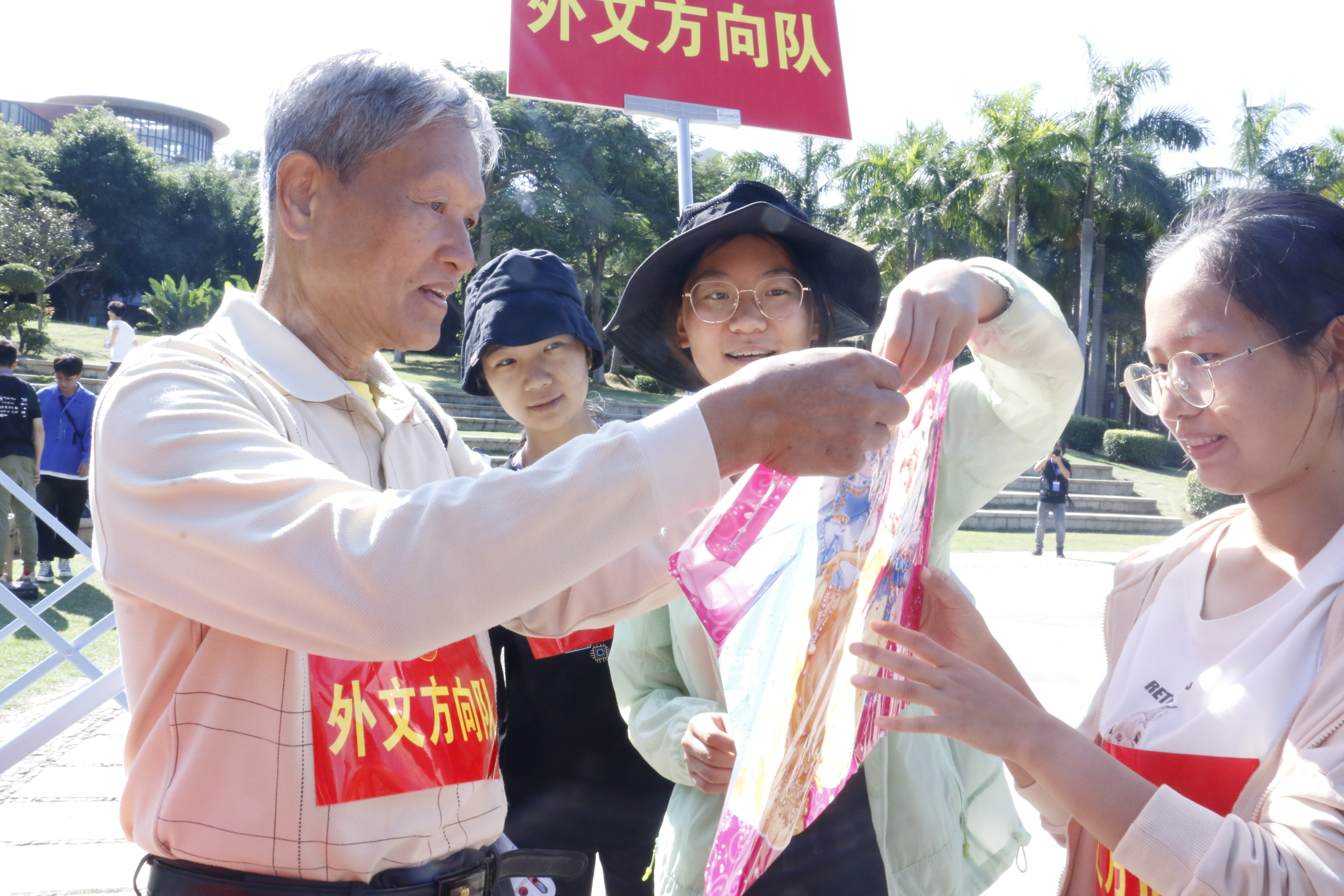 定向越野活动结束后,苏清辉老师欣慰地感慨在新一代外文人身上看到的朝气蓬勃和谦逊有礼:“今天有机会能和年轻人在一起参加活动,感觉自己也年轻了,一路上向他们介绍了厦大和学院的一些变迁,‘小朋友’听得津津有味。通关游戏中同学们对重阳节的诗词接龙和知识问答,让我看到当代年轻人对传统文化的了解和他们的感恩尊老之情。”张礼龙老师则追忆起自己的学生时代,并满怀真诚表达了对同学们的殷切期待和祝福,“希望青年人们能珍惜这来之不易的好时代、好机会,不负韶华,好好学习,全面锻炼自己,把自己培养成为国家和时代需要的人才,也为自己创造一个美好前程,为实现我们中华民族伟大复兴的中国梦贡献力量。”参与现场活动的同学们也同样热情高涨,2020级法语专业本科生朱芳同学表示:“很荣幸能在重阳佳节与老师们共赏厦大风光,聆听外文故事。这次越野活动中不仅体验到好玩的游戏,更感受到厦大百年传承的精神。很开心能有这次和老师交流的机会,衷心祝福老师们节日快乐,身体健康!”