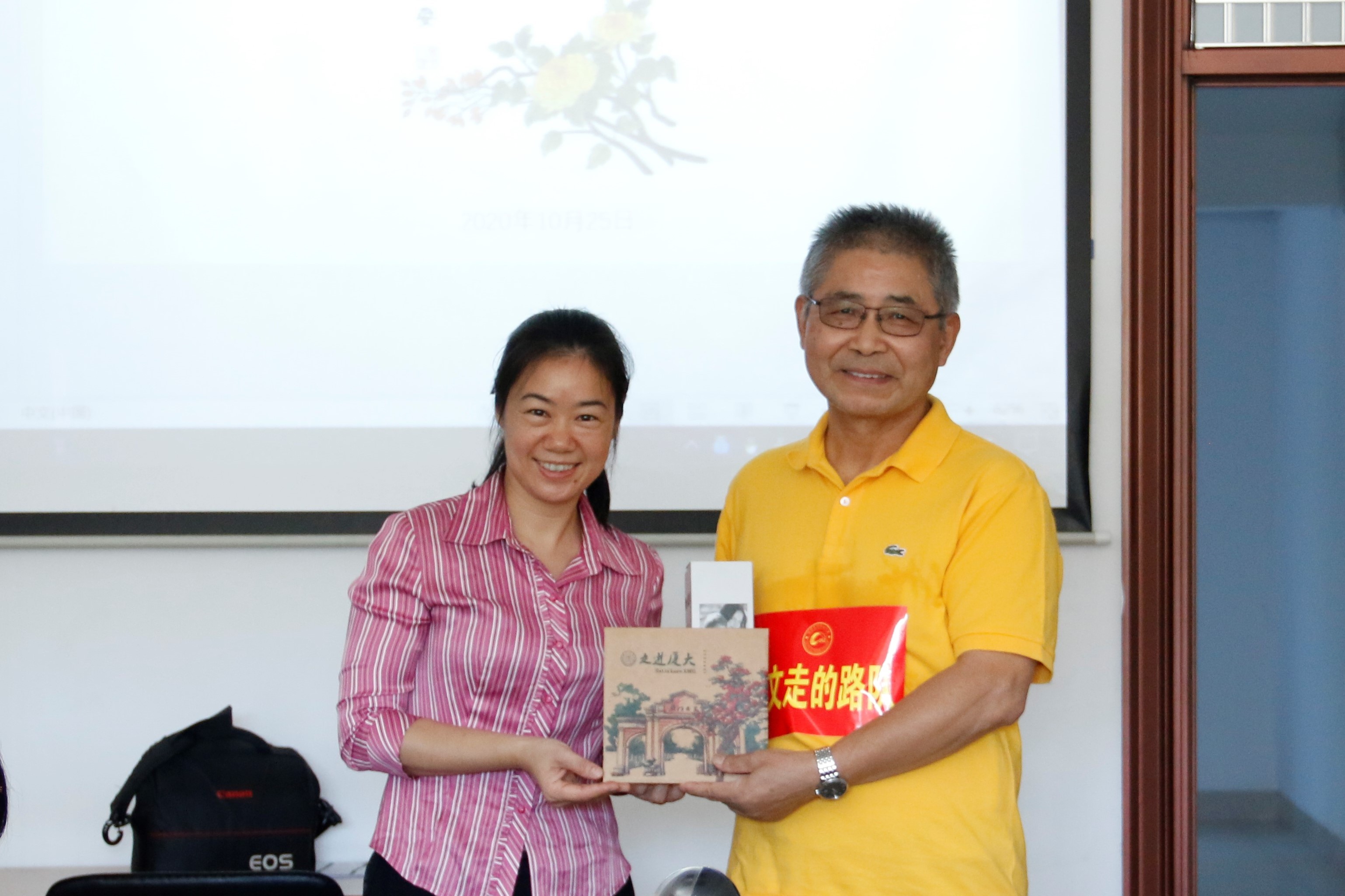 定向越野活动结束后,张礼龙、苏清辉两位老师来到外文学院德贞楼,与2020级新生一同参加重阳茶话会。会上,张老师与苏老师分享了自己几十年来的生活经历与人生经验。张老师在分享中将自己的求学经历与对时代的看法相结合,肯定了外文学子敬老爱老的优秀传统文化品质,勉励外文新生时刻保有好奇之心,紧跟时代步伐;苏老师则谈到自己的父母就是“厦大人”,讲述了他与厦大的深厚感情,勉励外文新秀们艰苦求学,培养国际视野,发扬外文精神,同时他也提醒同学们要深入了解厦大文化,传承厦大精神,让自己成为真正的“厦大人”。茶话会后,学院团委副书记、辅导员戴晓燕为两位老师送上了重阳纪念礼物,表达了对老同志们真挚的节日祝福。